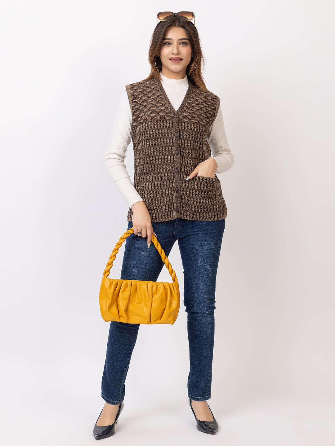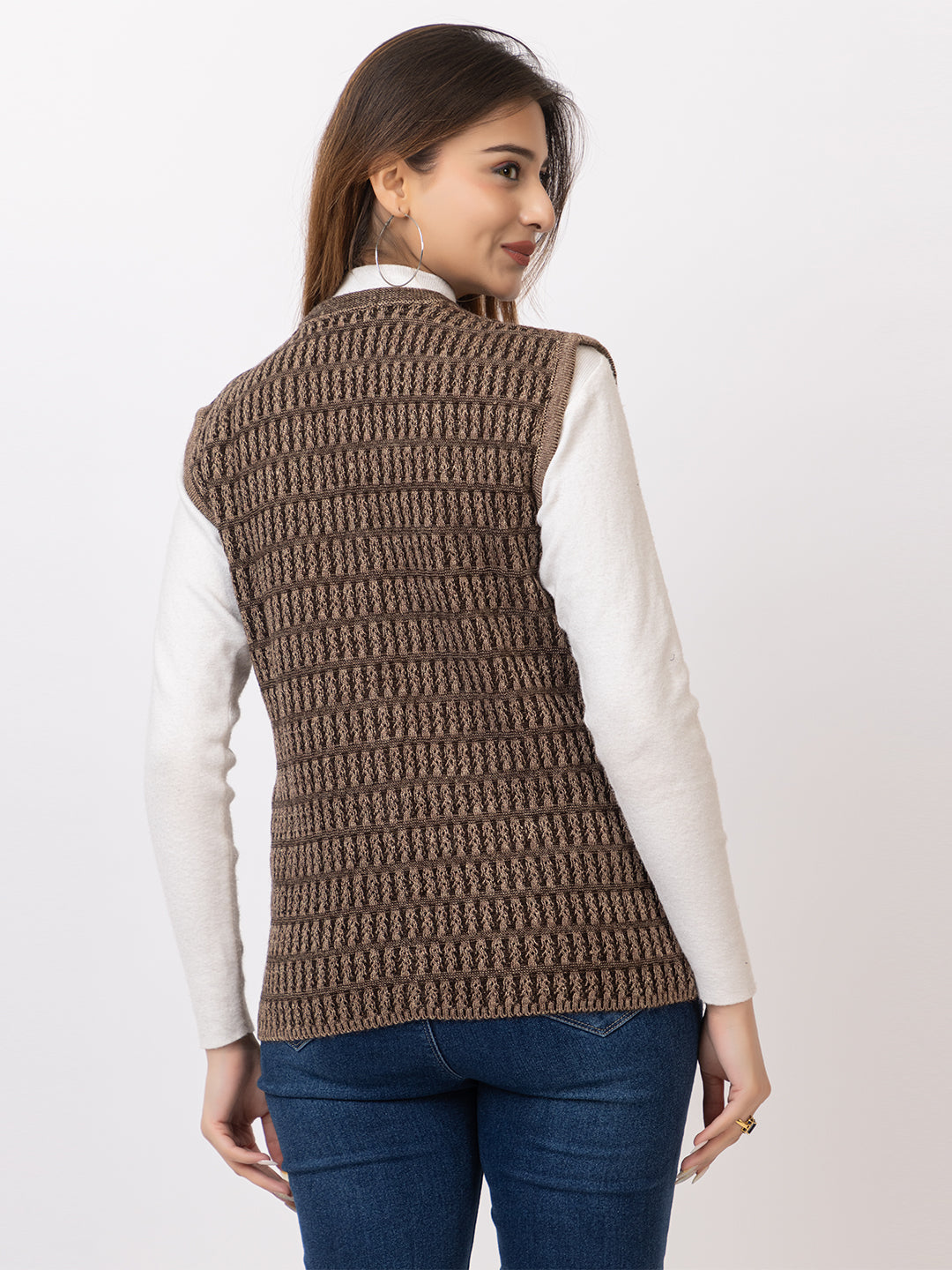 1261 Brown Sleeveless Cardigan Winter Wear TWENTY ME