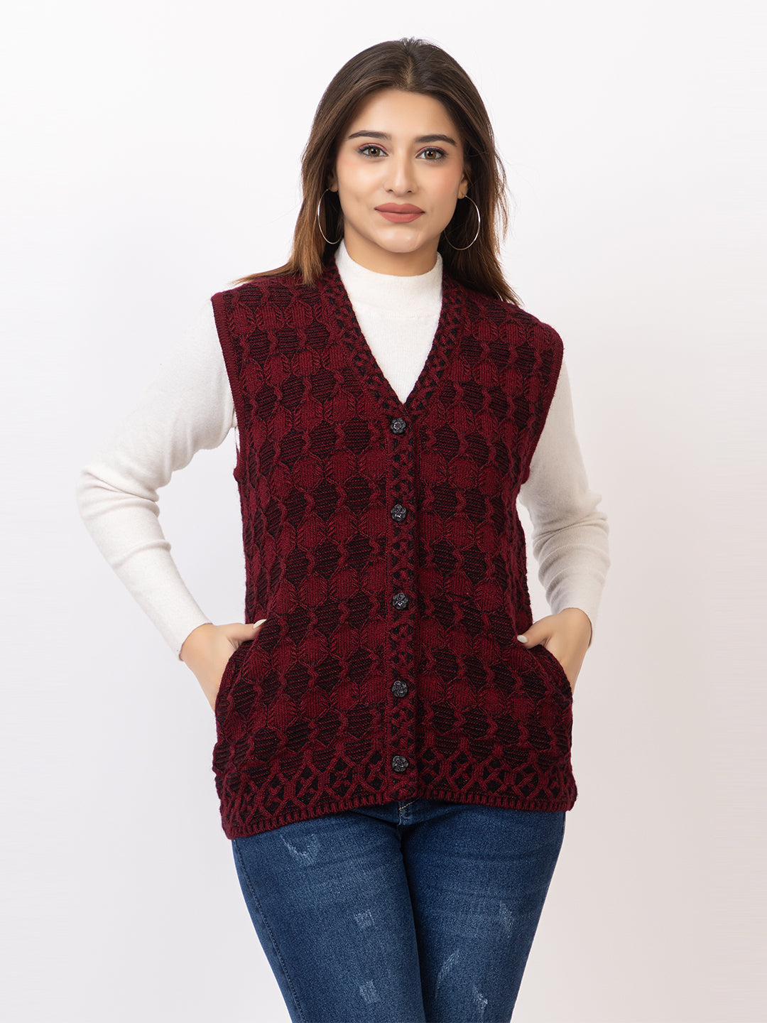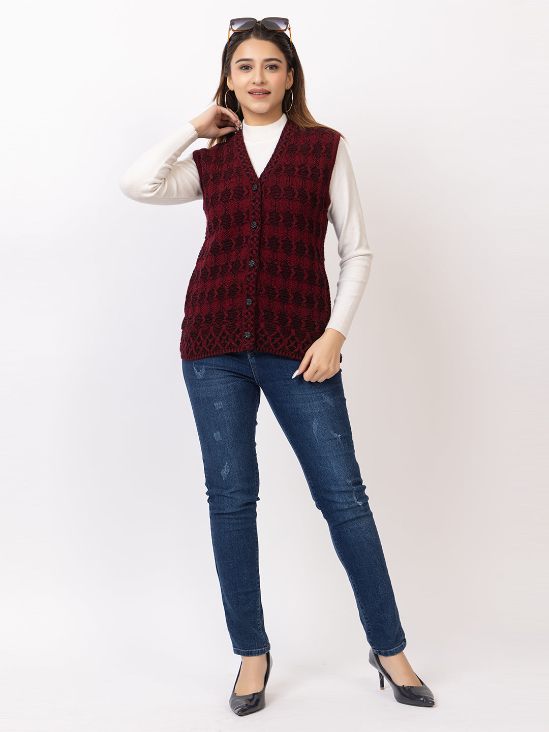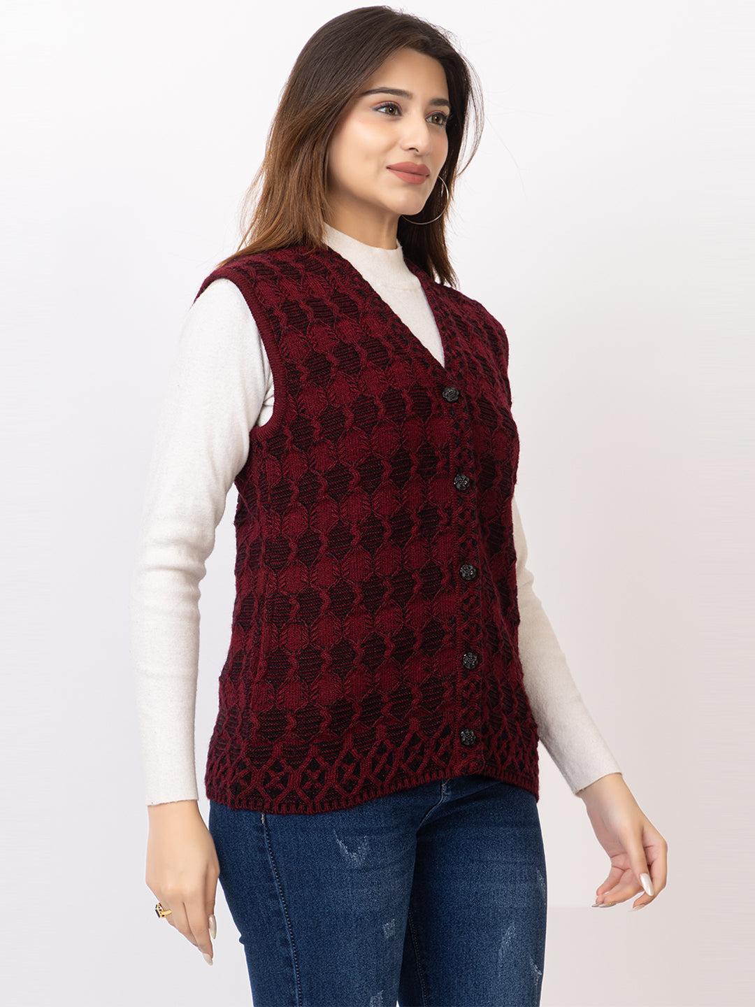 1263 Maroon Sleeveless Cardigan Winter Wear TWENTY ME