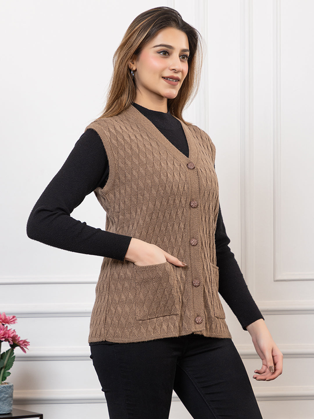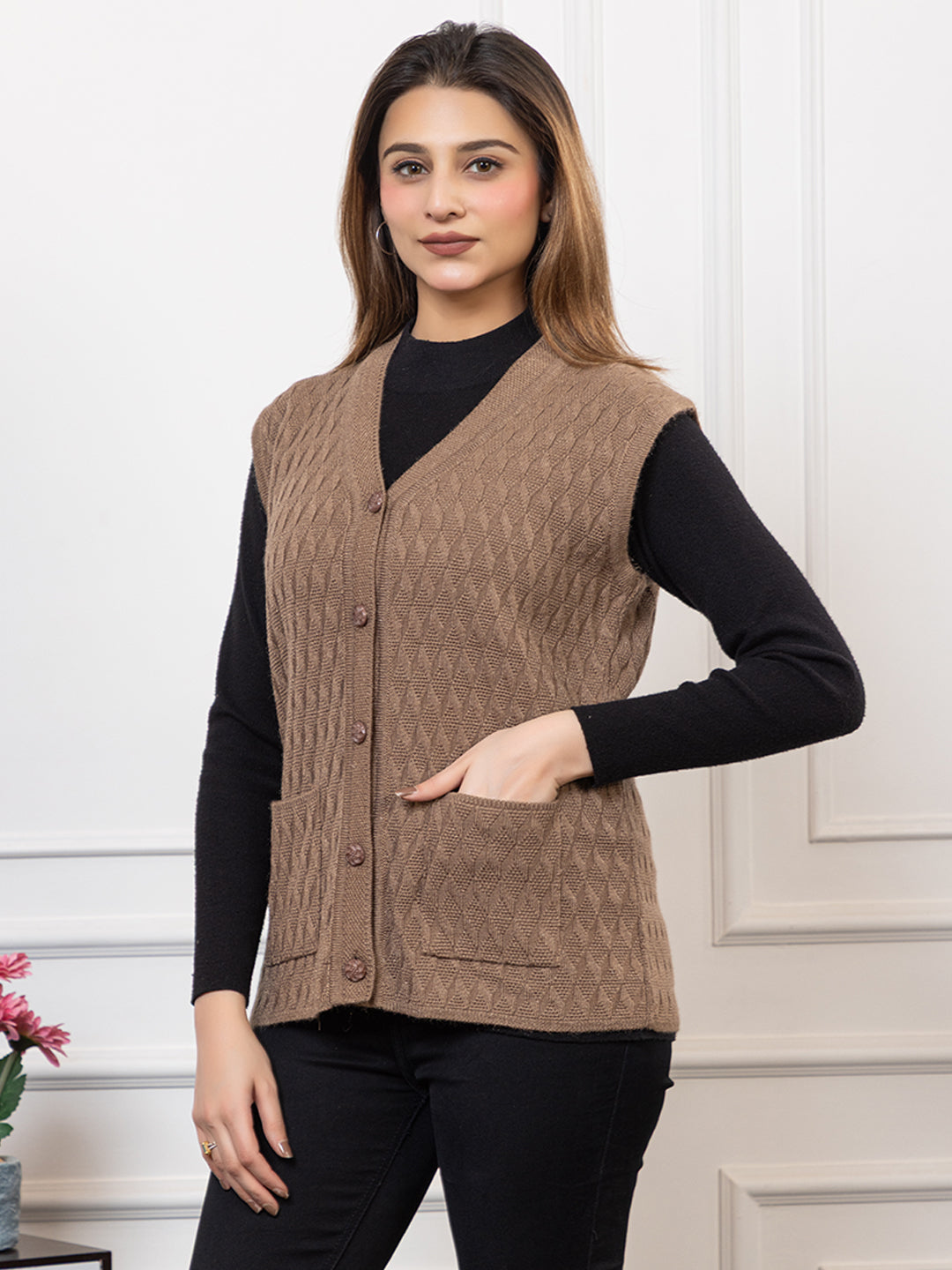 1266 Mouse Self Design Sleeveless V Neck Acrylic Wool Warm Front Two Pockets Cardigan TWENTY ME