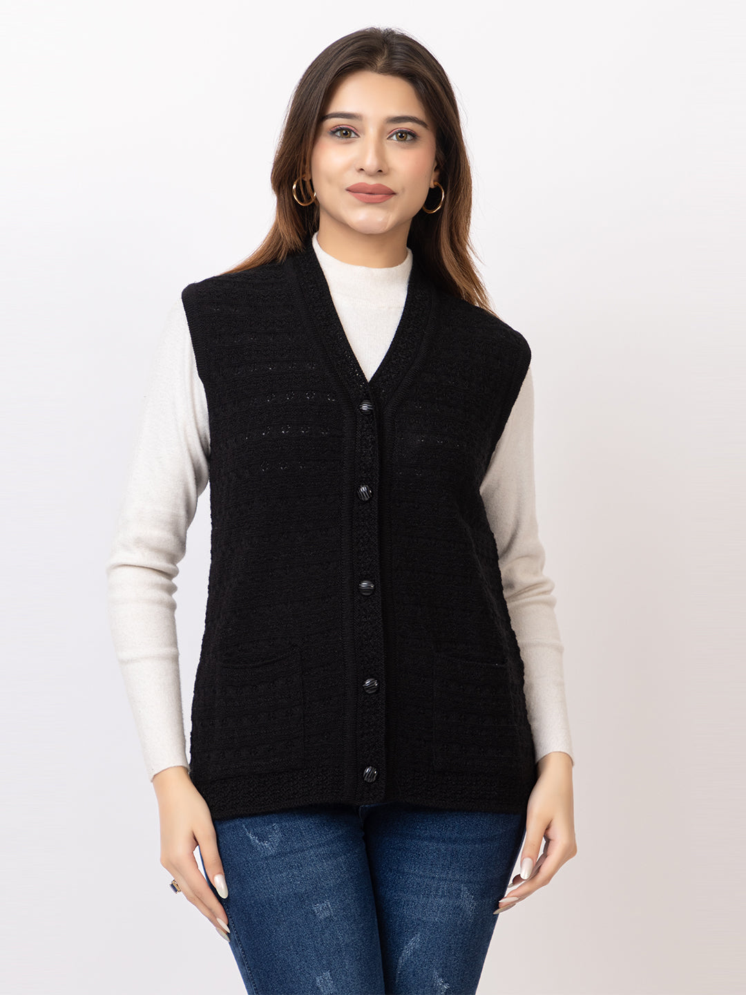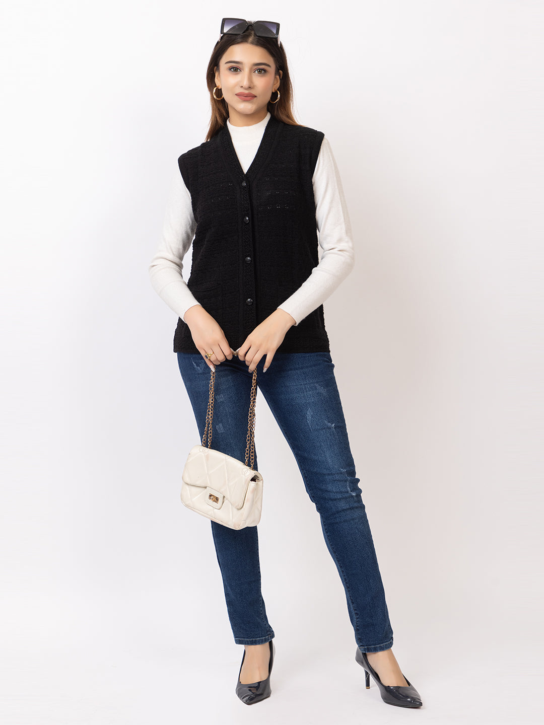 1269 Black Sleeveless V Neck Cardigan Winter Wear TWENTY ME