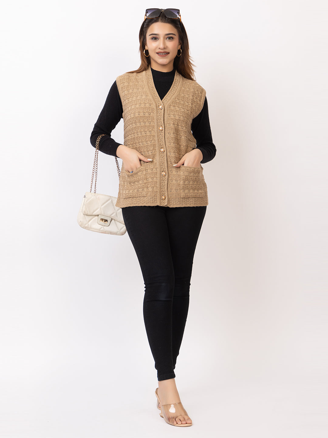 1269 Camel Sleeveless Cardigan Winter Wear TWENTY ME