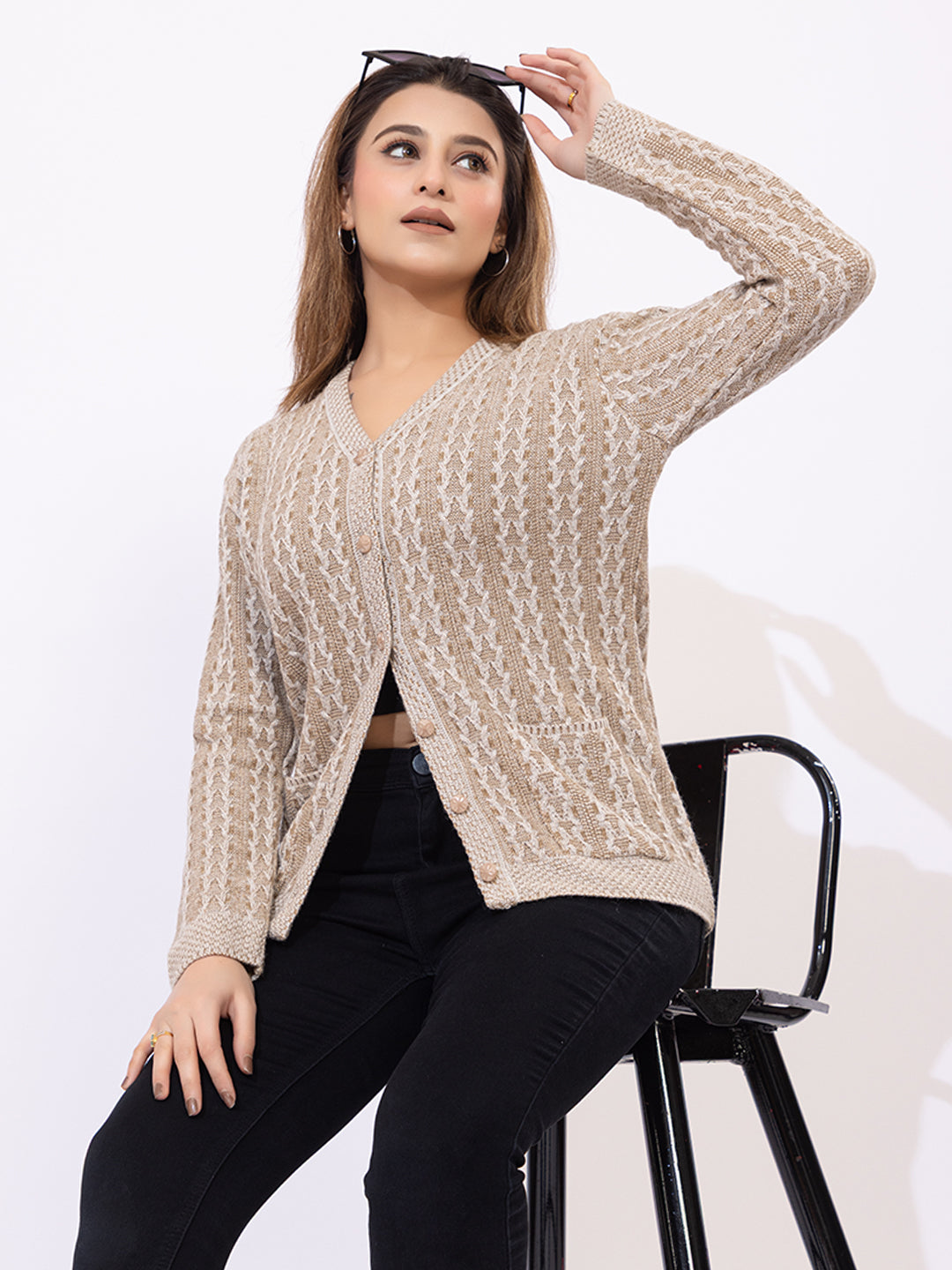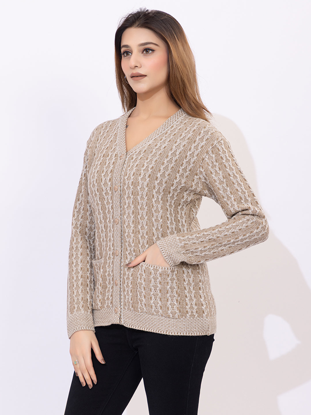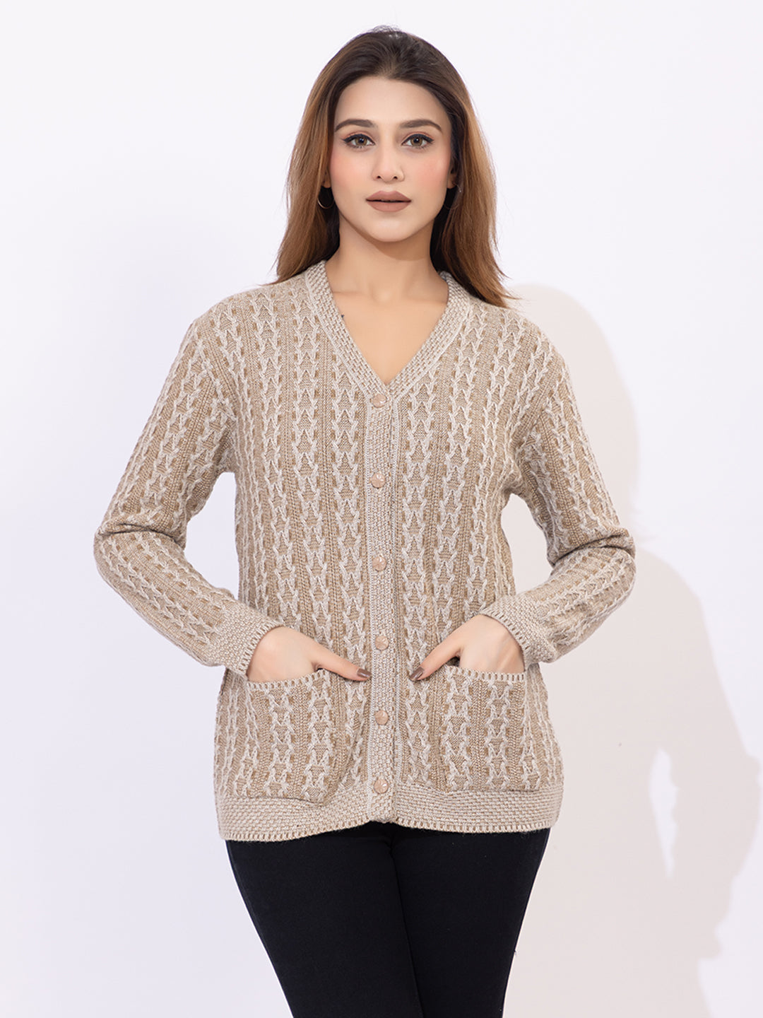 2015 Beige Casual Full Sleeve with Front Pockets Women's Cardigans Winter WearTWENTY ME