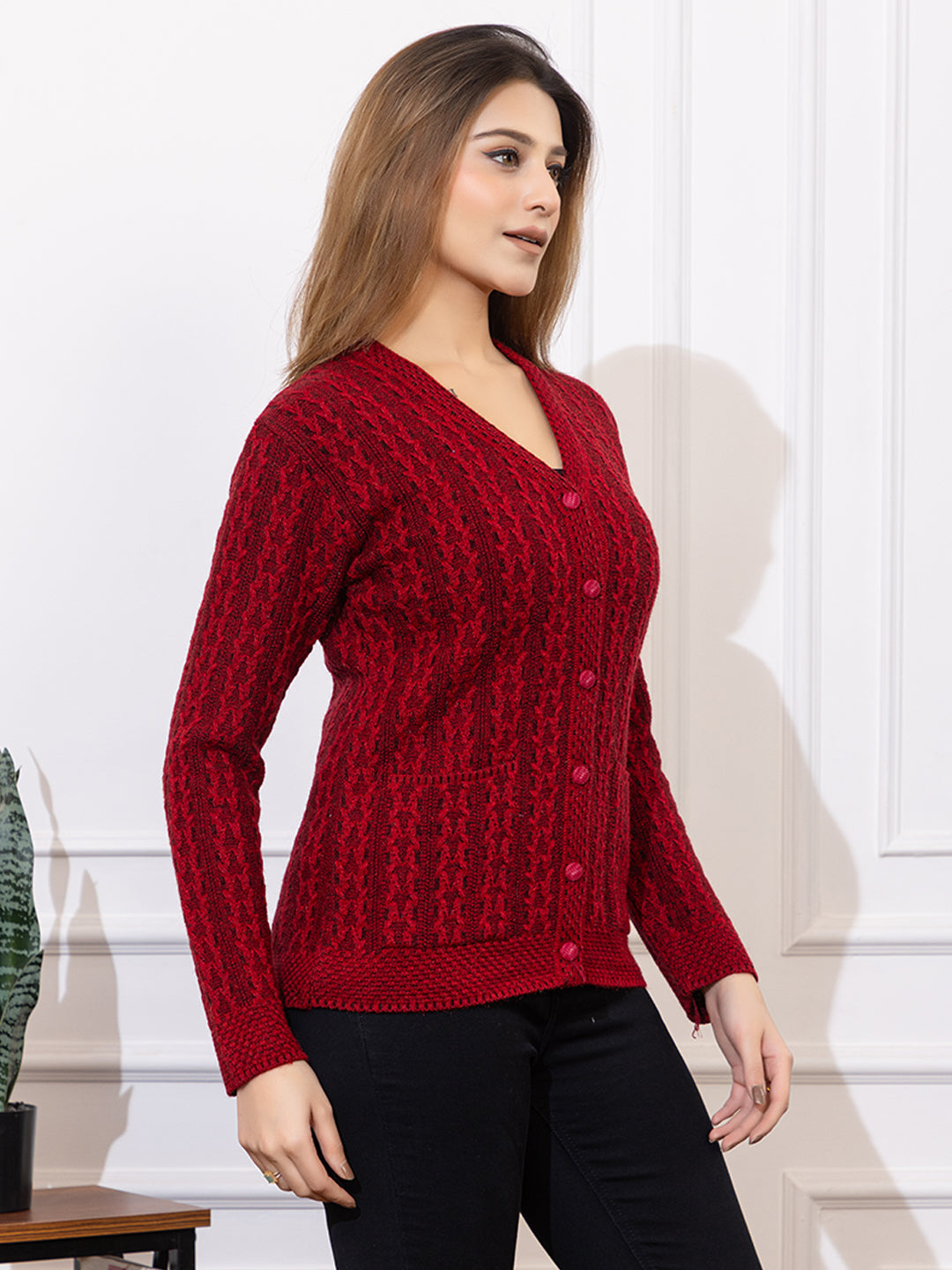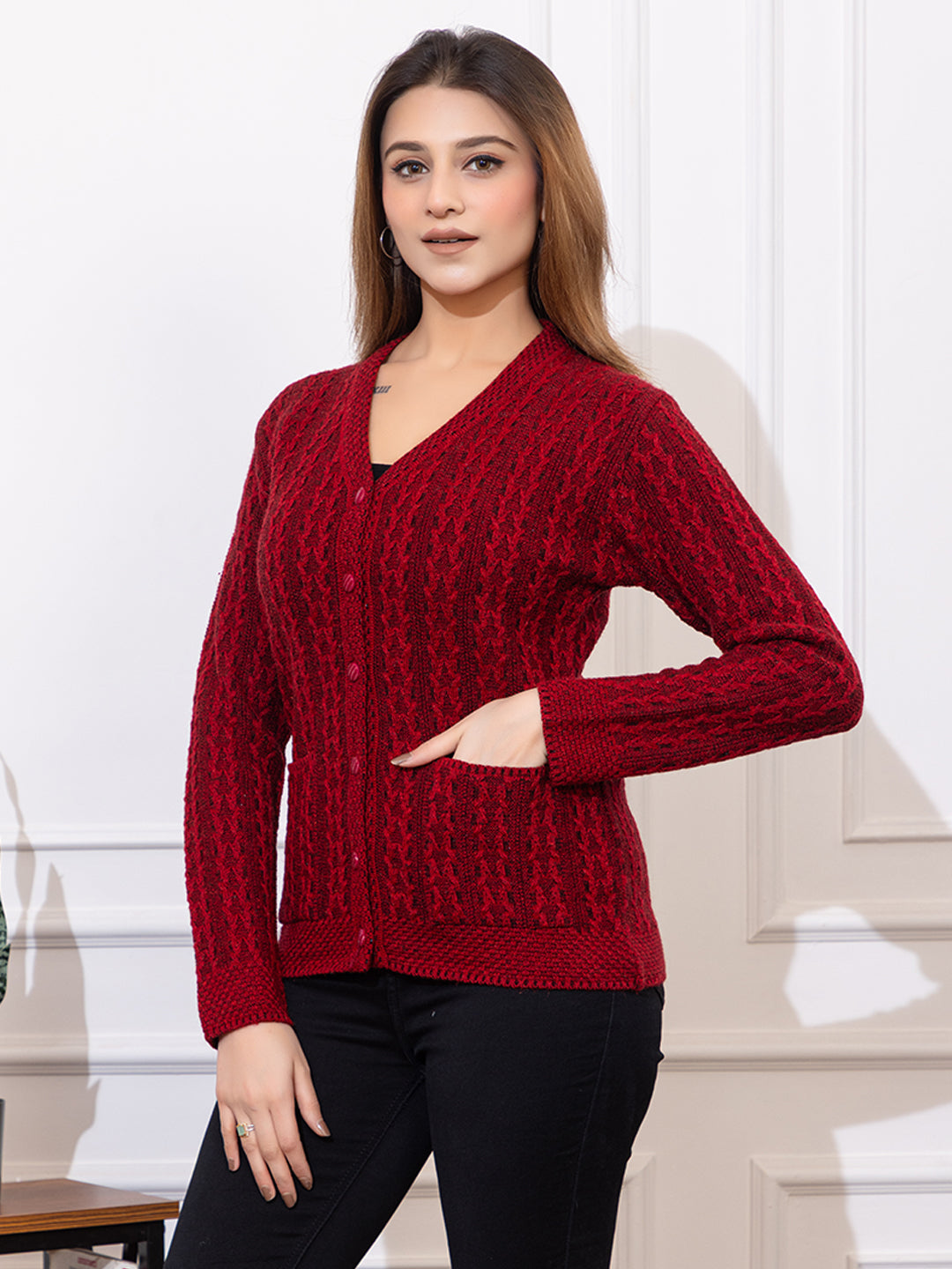 2015 Maroon Casual Full Sleeve with Front Pockets Women's Cardigans Winter WearTWENTY ME