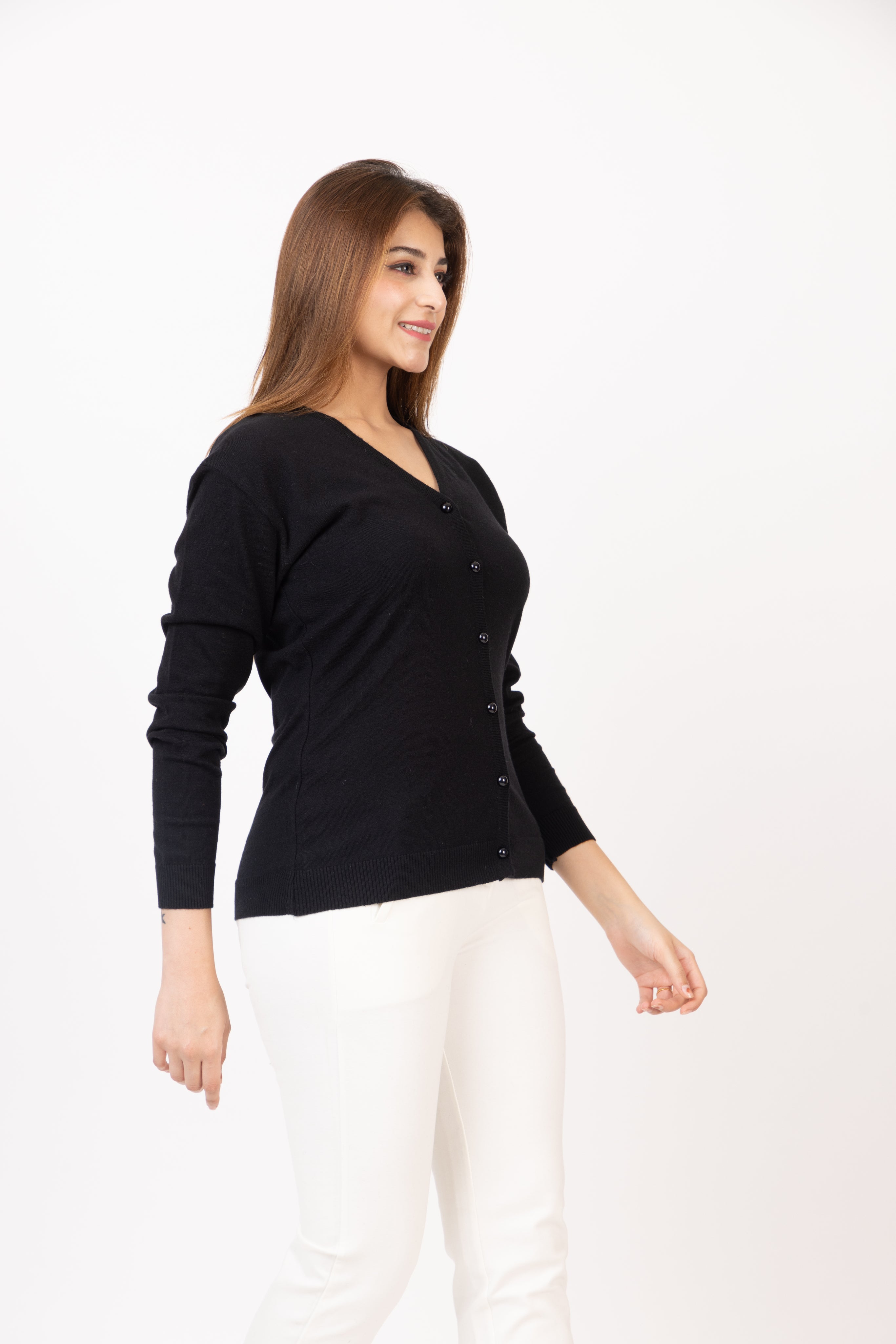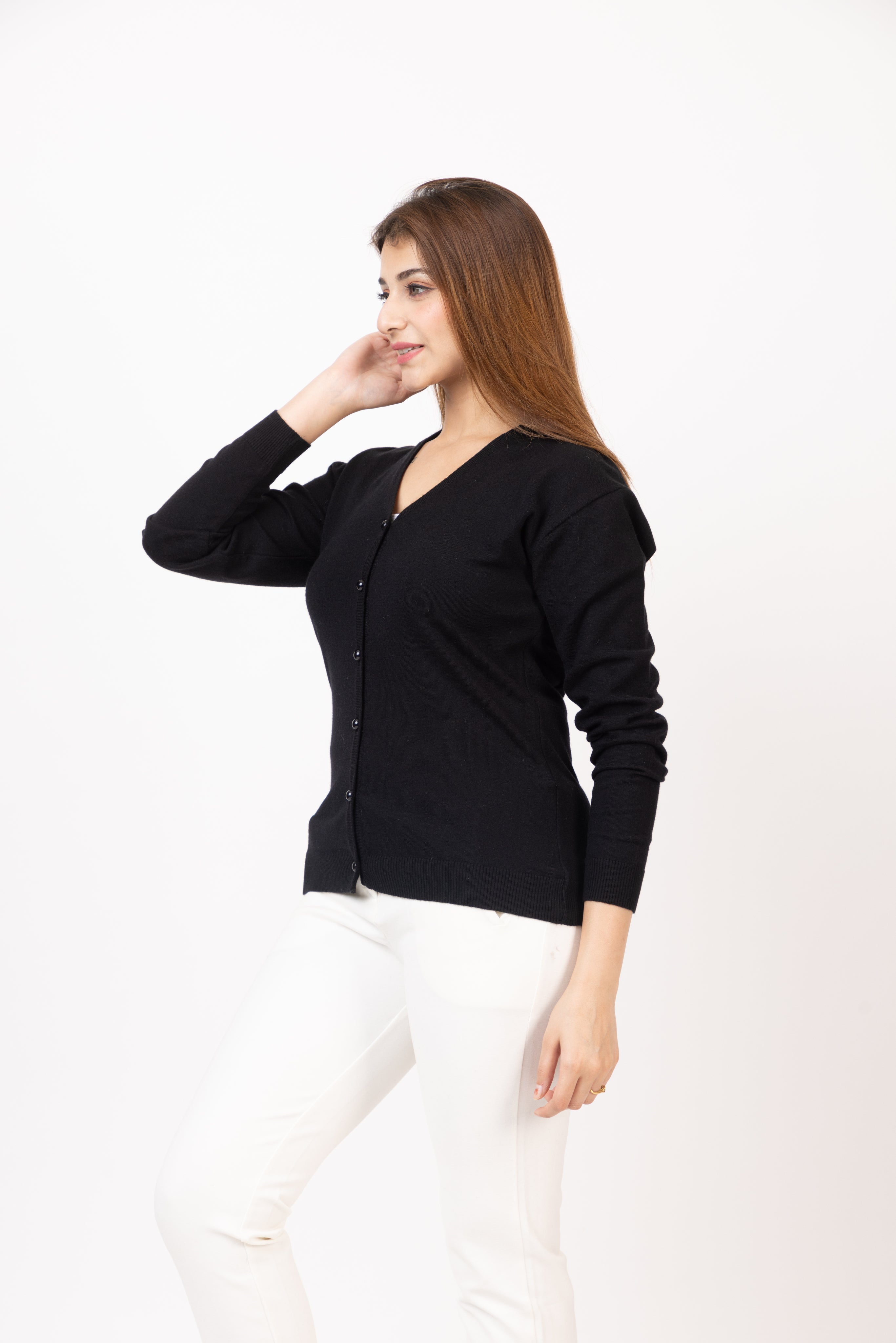 2186 Black Stylish Self Design Cardigans Winter Wear TWENTY ME