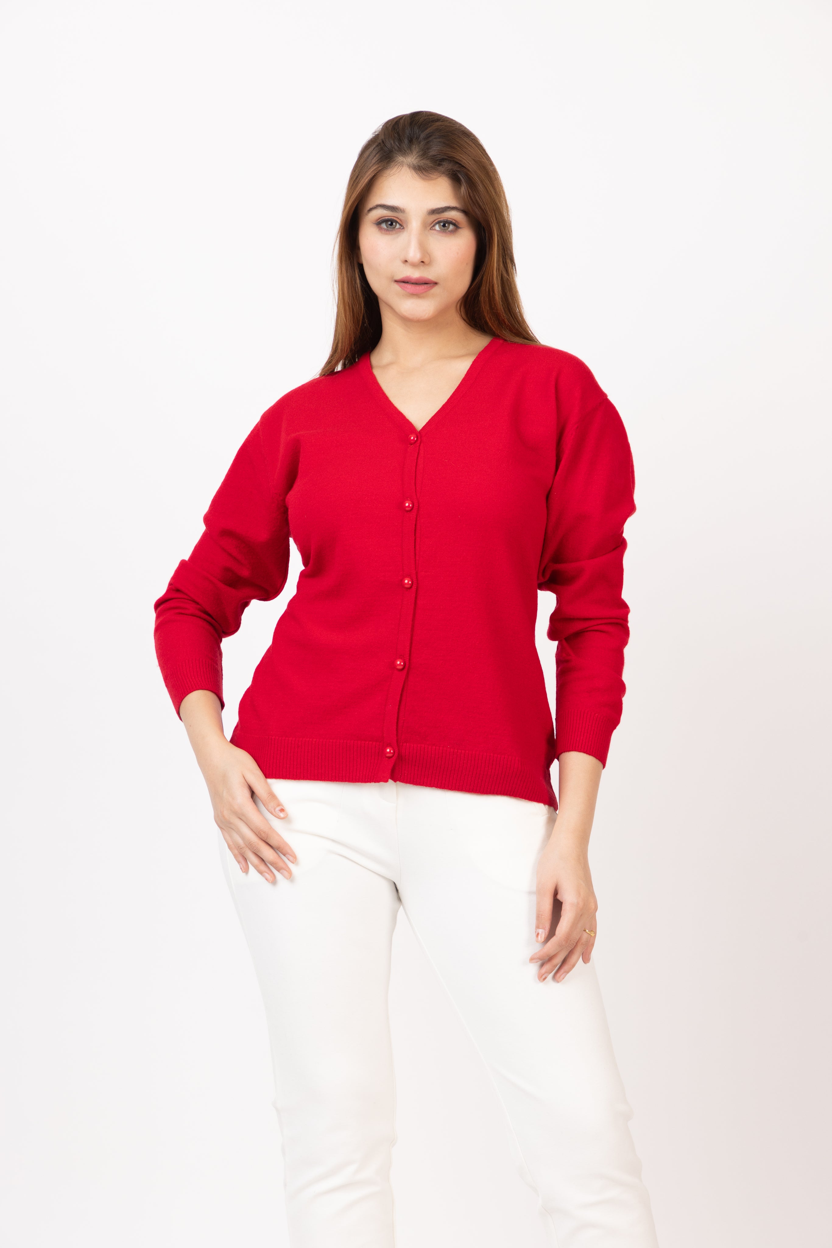 2186 Red Stylish Self Design Cardigans Winter Wear TWENTY ME
