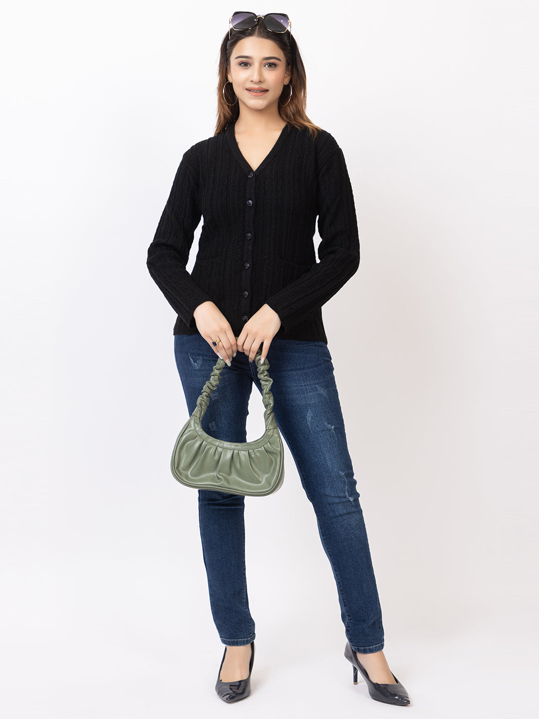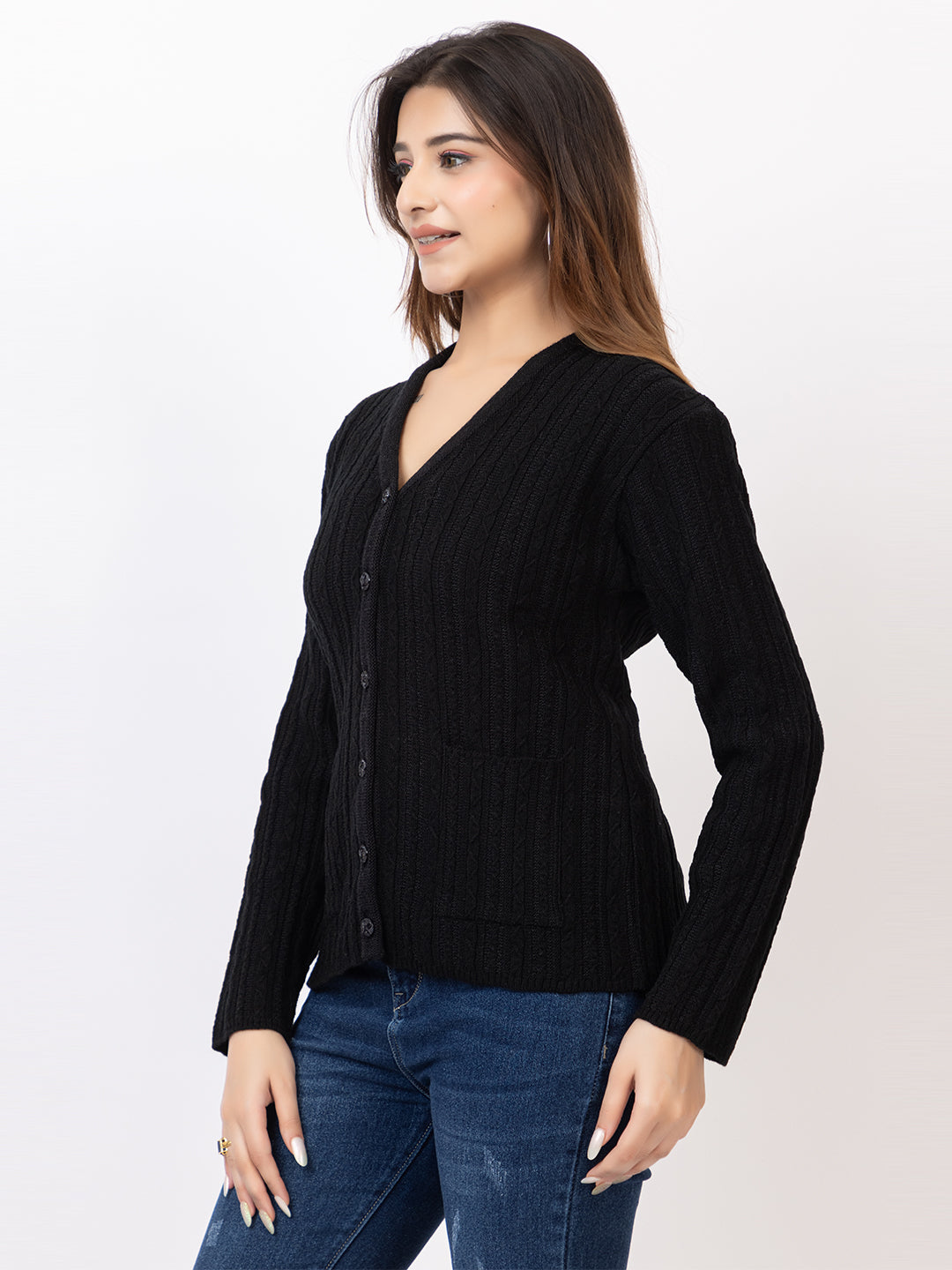 2380 Black V neck Cardigan winter wear TWENTY ME