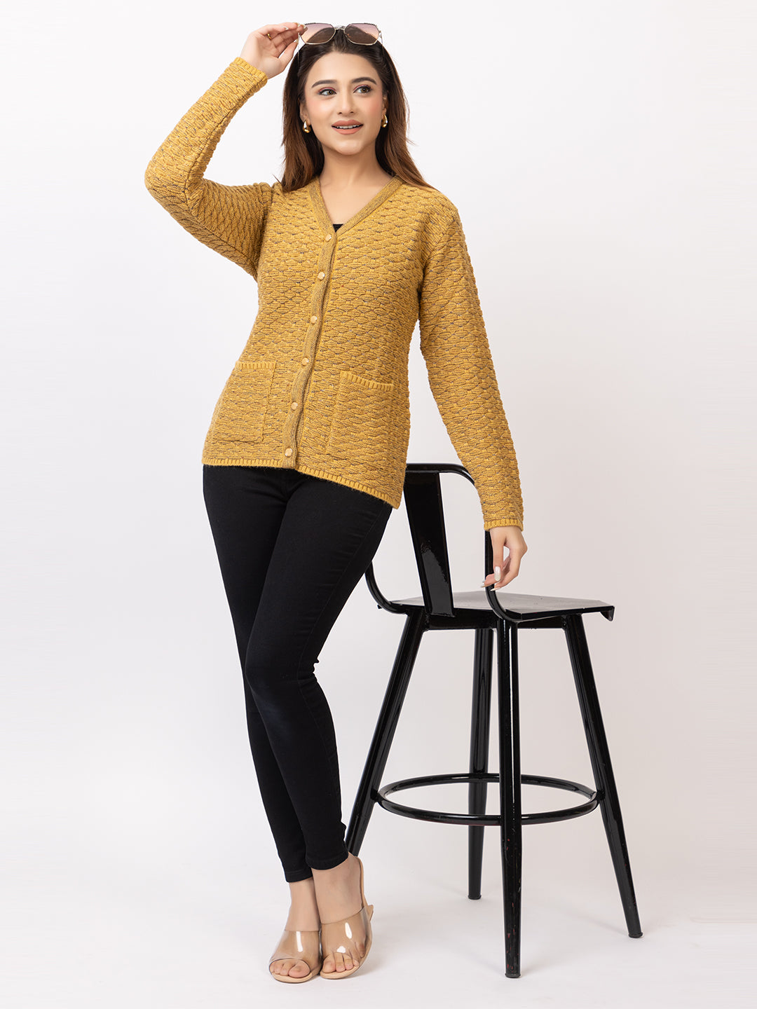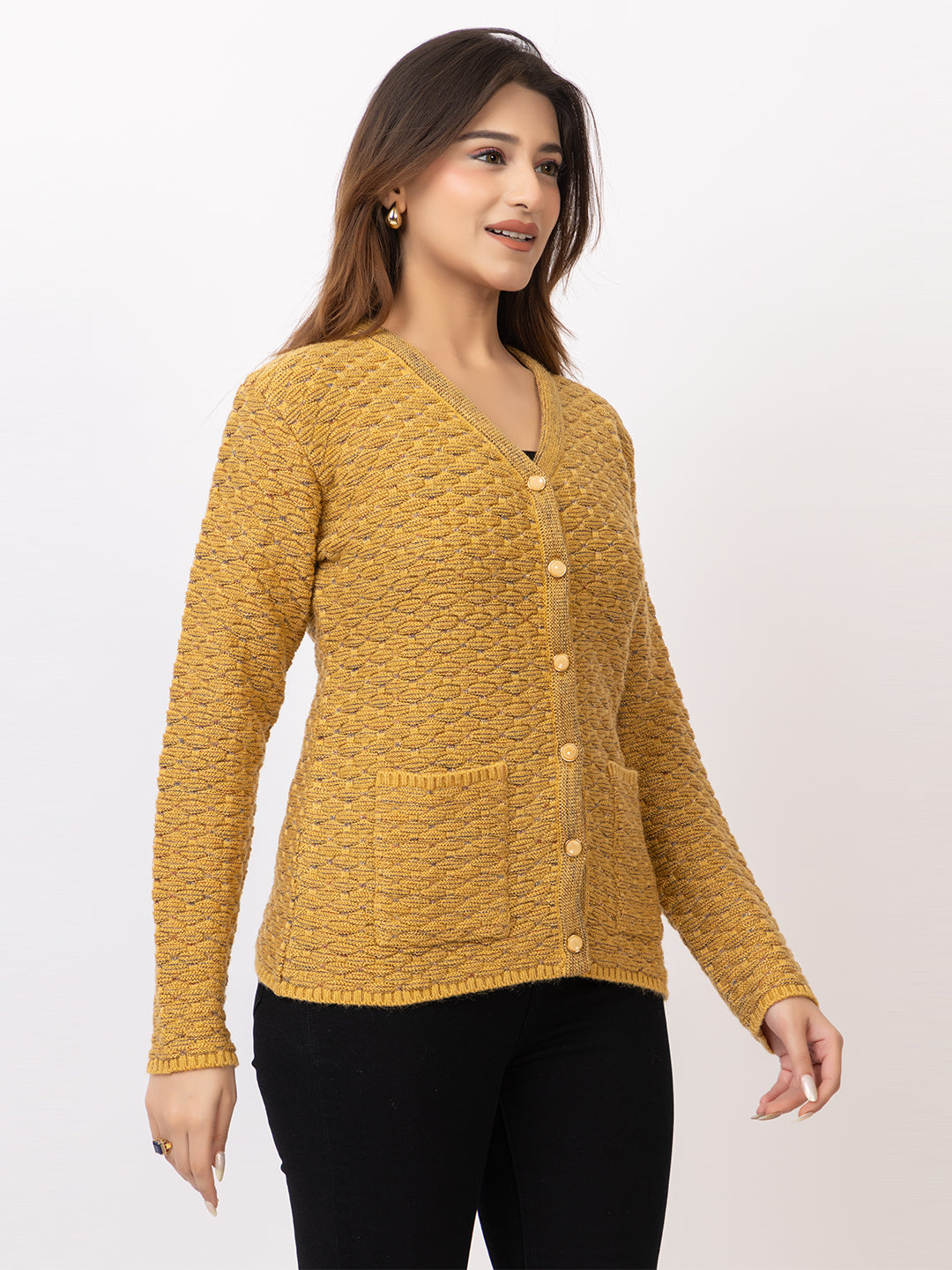 2384 Mustard V neck Cardigan winter wear TWENTY ME
