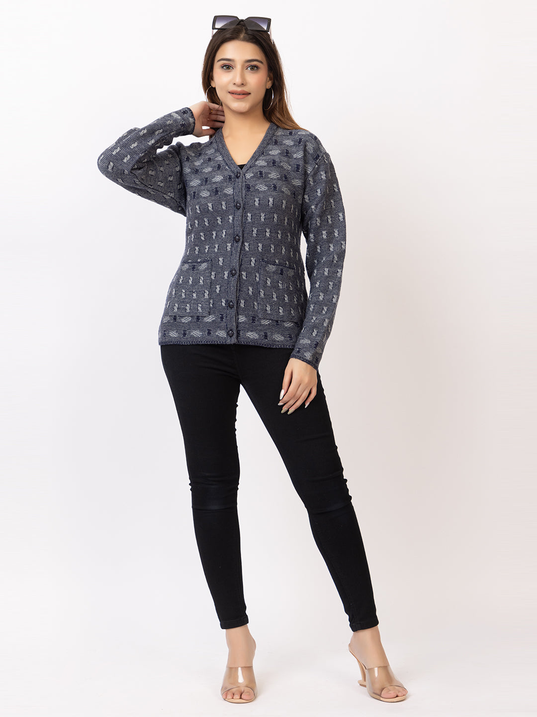 2393 Navy V neck Cardigan winter wear TWENTY ME