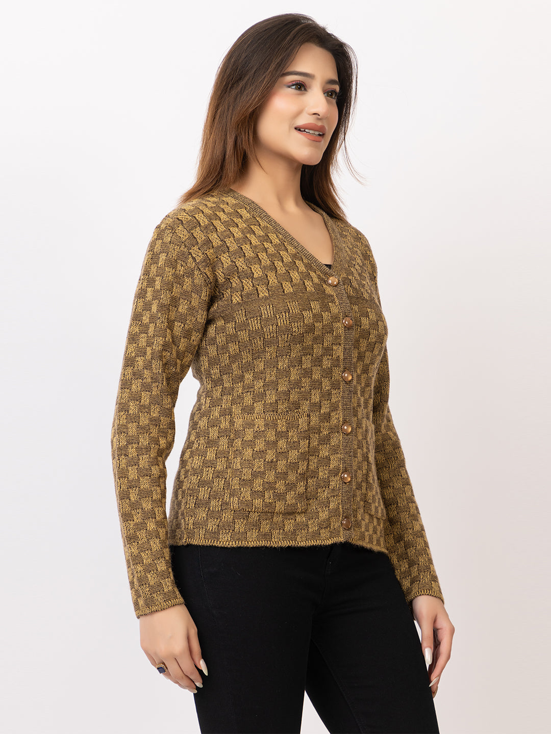 2394 Mustard V neck Cardigan winter wear TWENTY ME