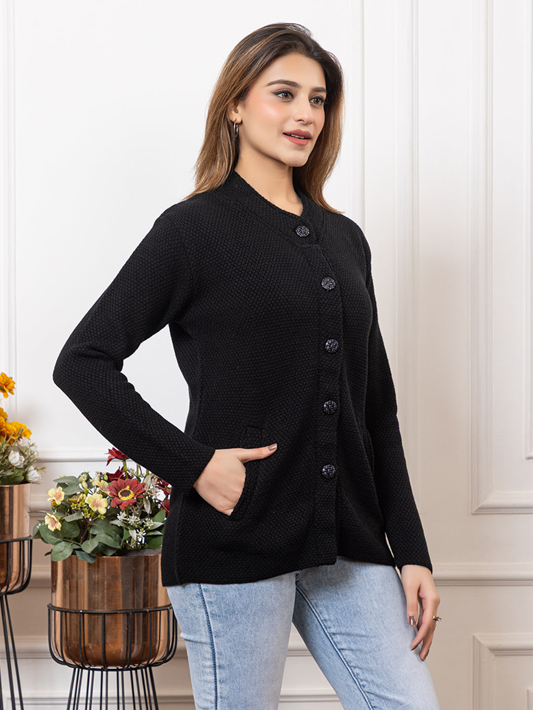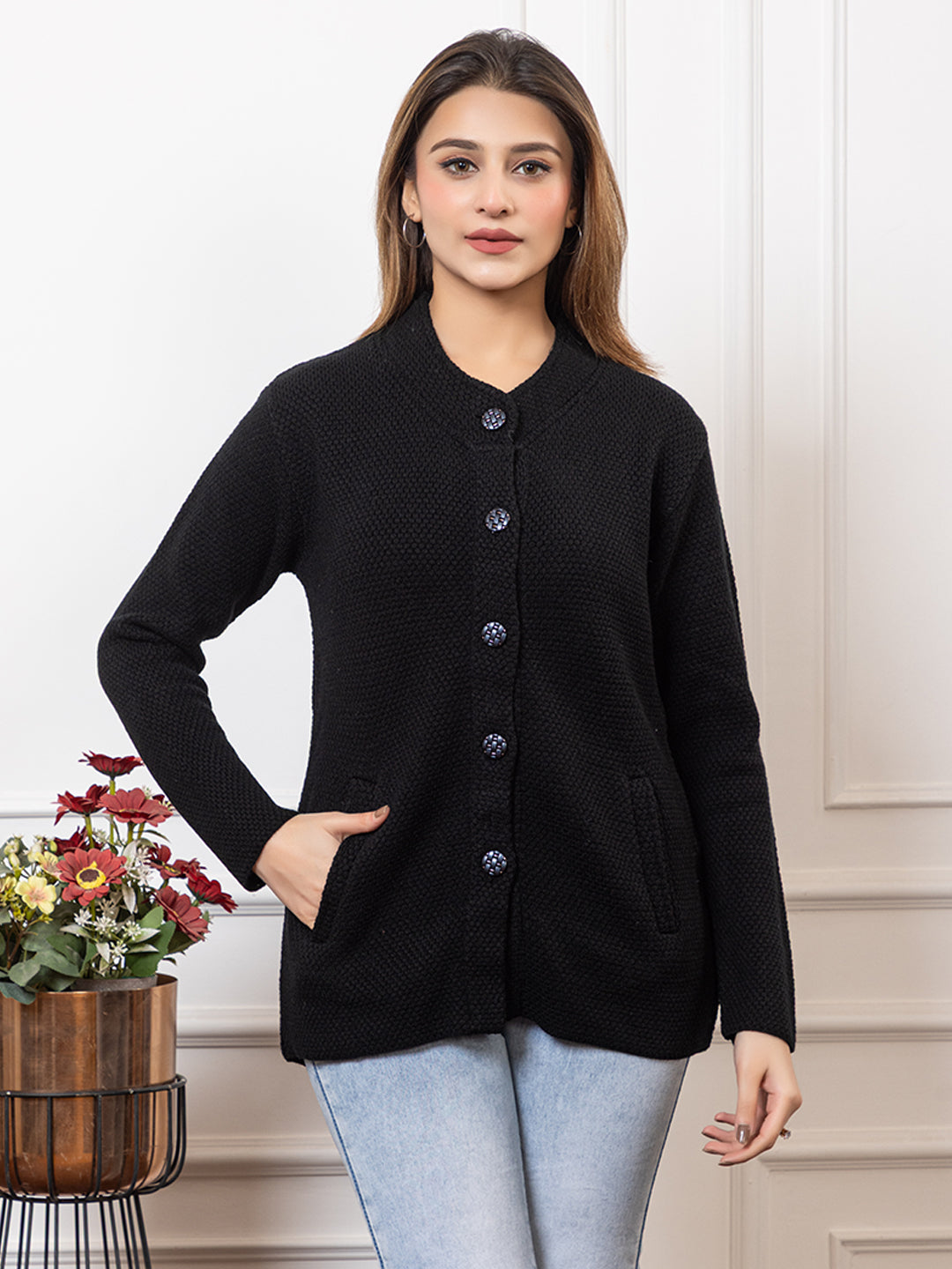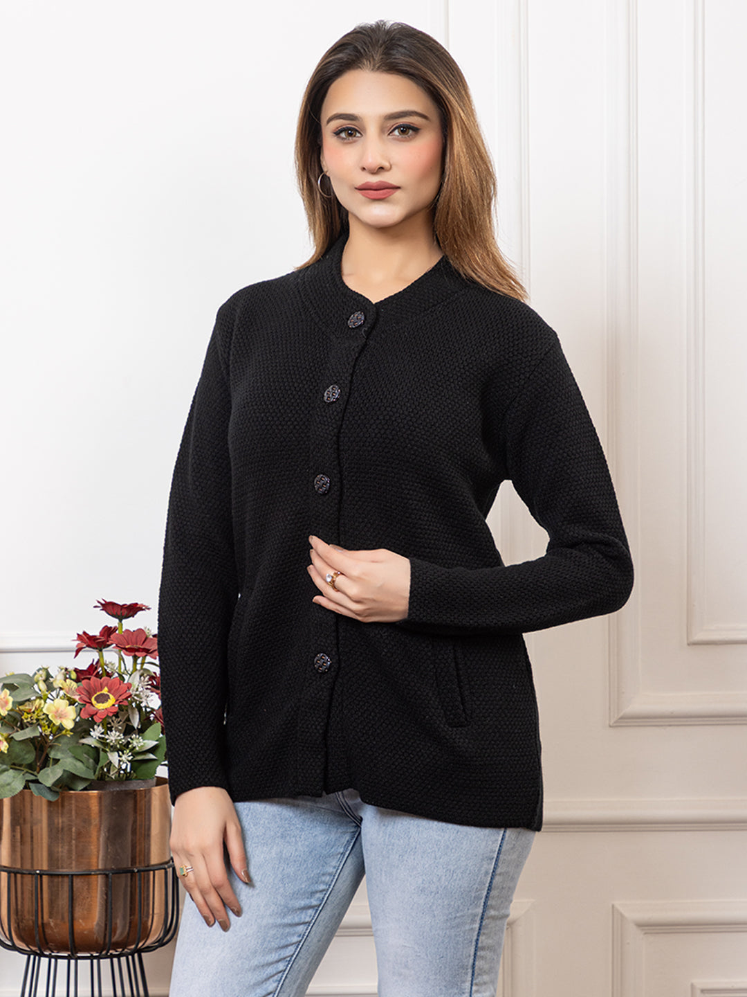 2395 Black Full Sleeve with Side Pockets Women's Cardigans Winter Wear TWENTY ME
