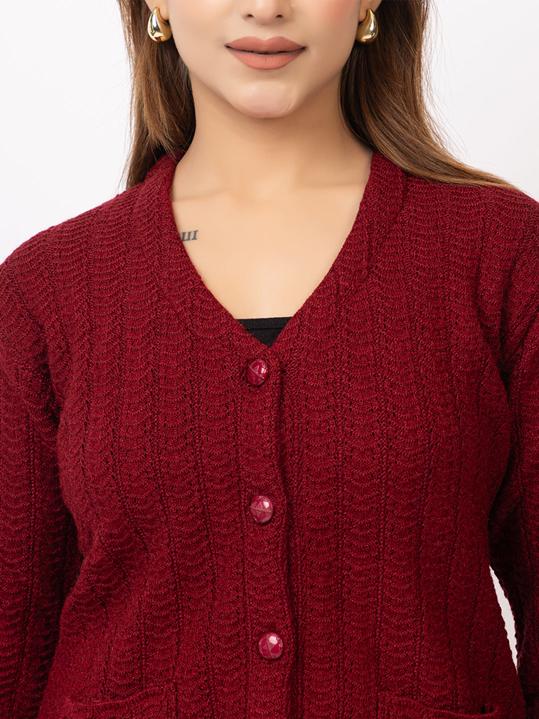 2400 Maroon V neck Cardigan winter wear TWENTY ME