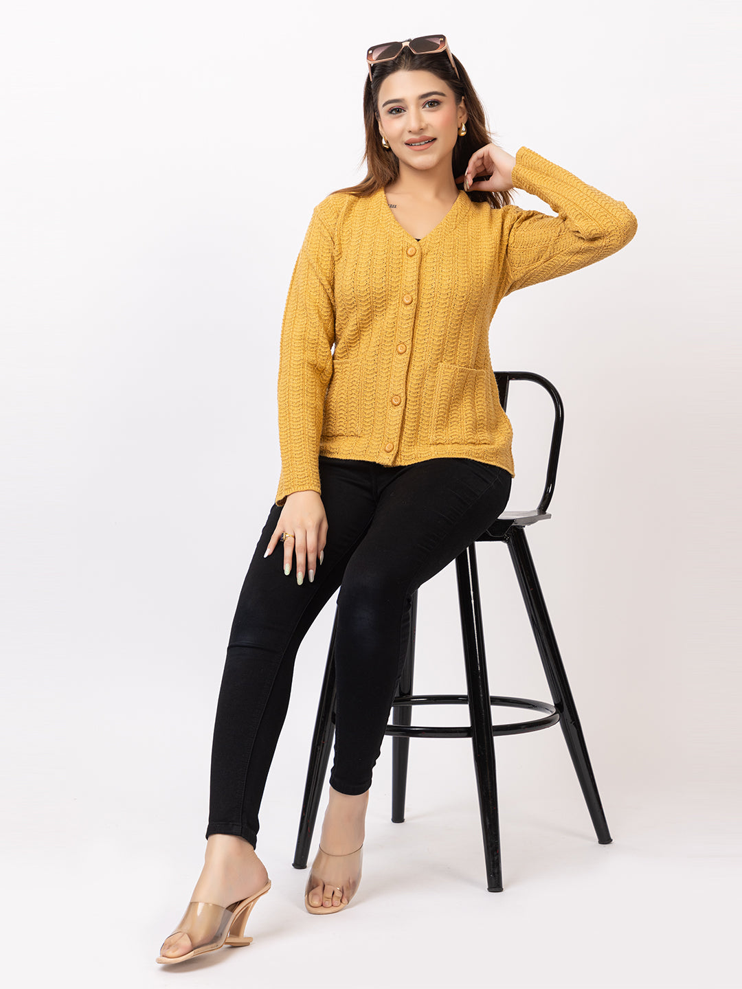 2400 Mustard V neck Cardigan winter wear TWENTY ME