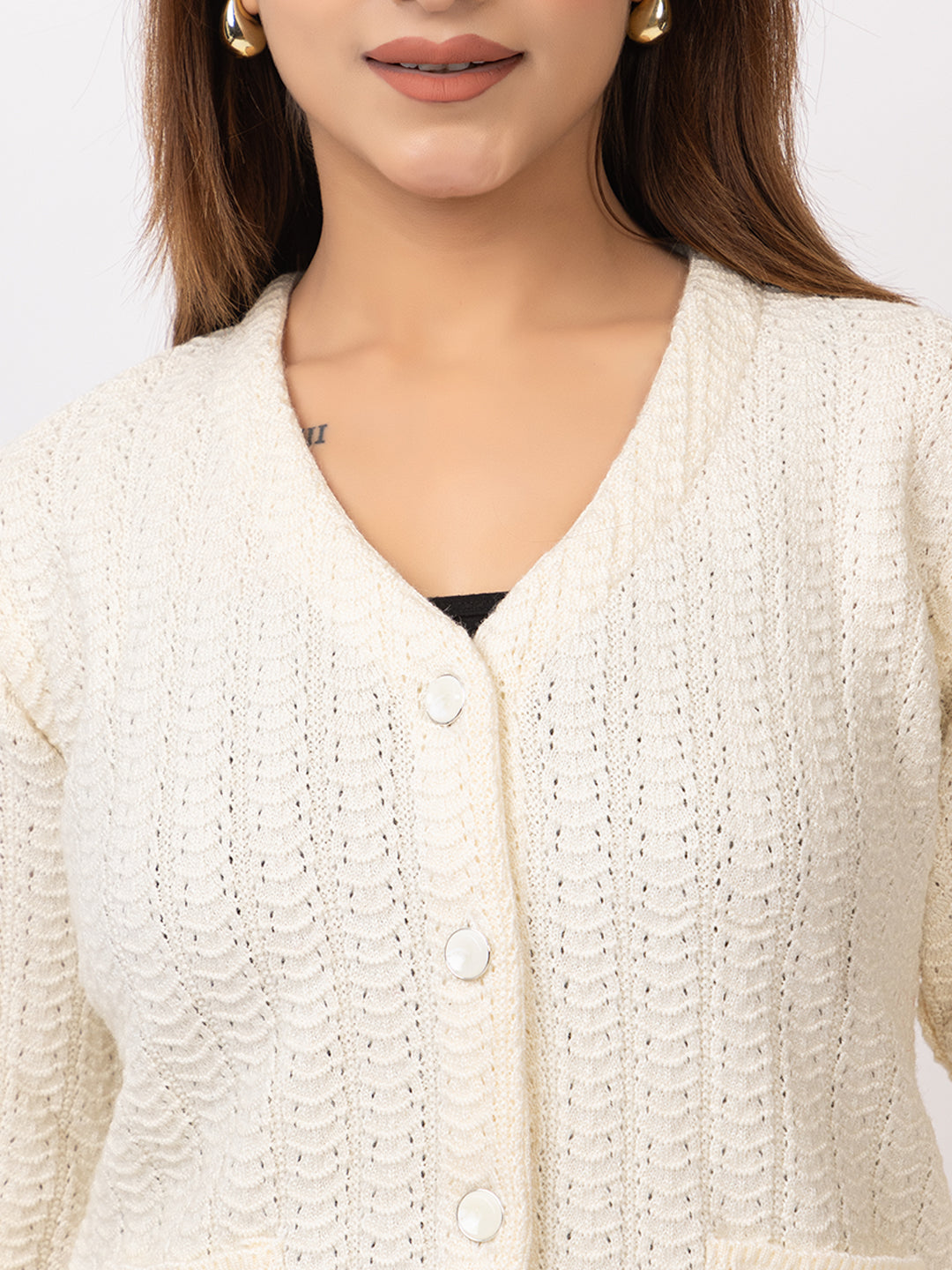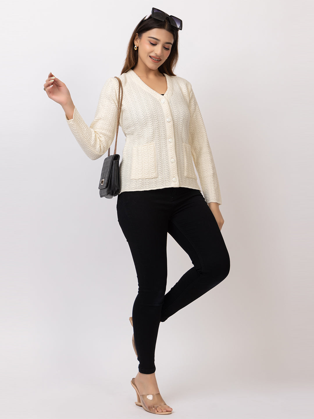2400 Off White V neck Cardigan winter wear TWENTY ME