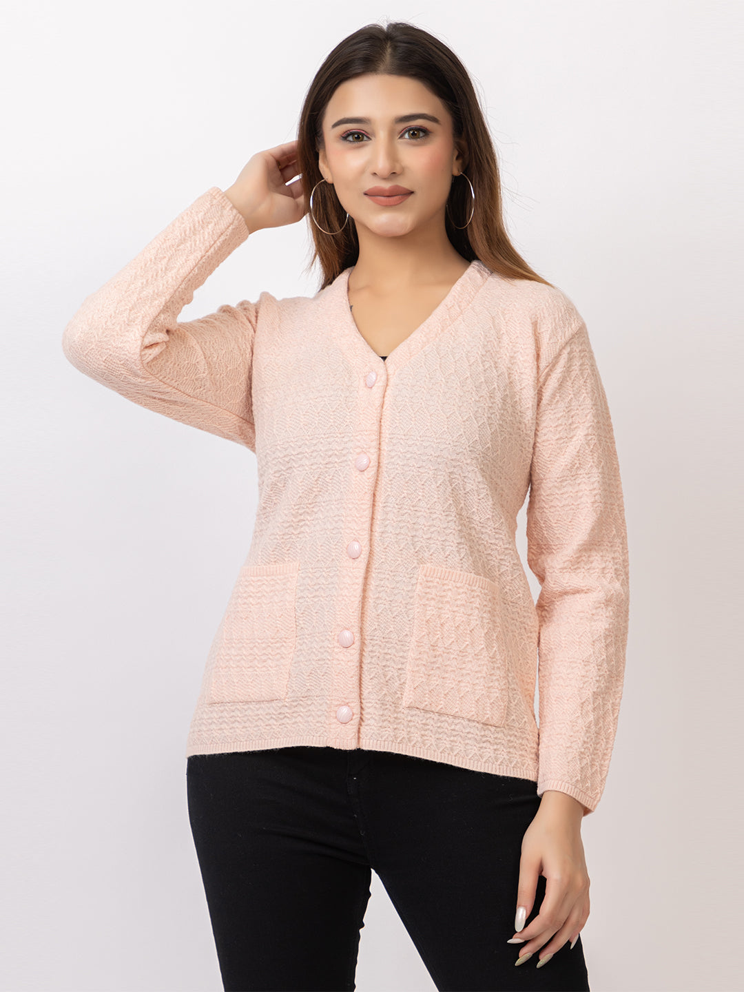 2410 Pink V Neck Cardigan winter wear TWENTY ME