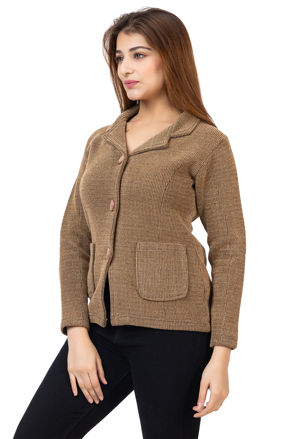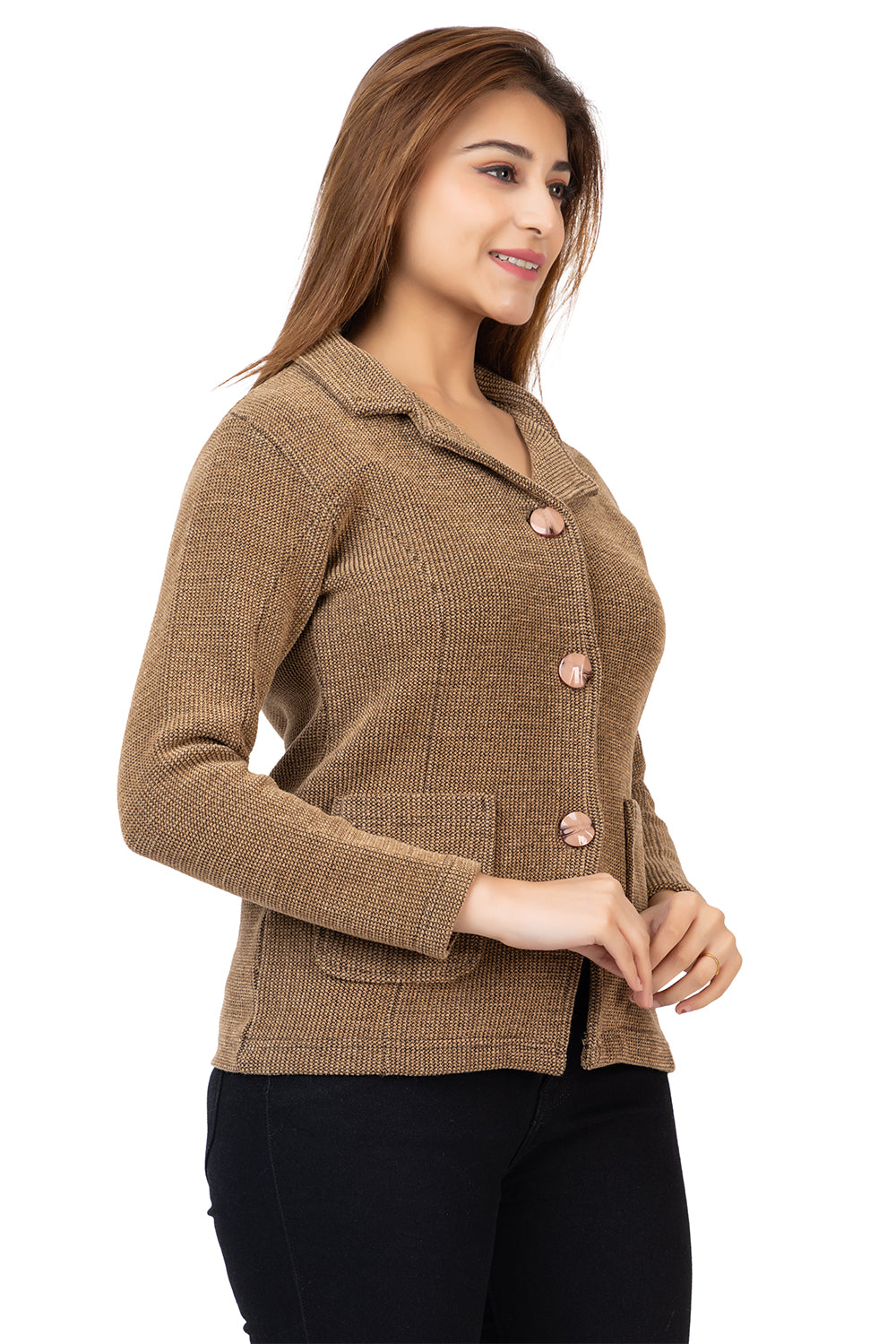 2815 Camel Knitted Notched-Collar Cardigan with Pockets TWENTY ME