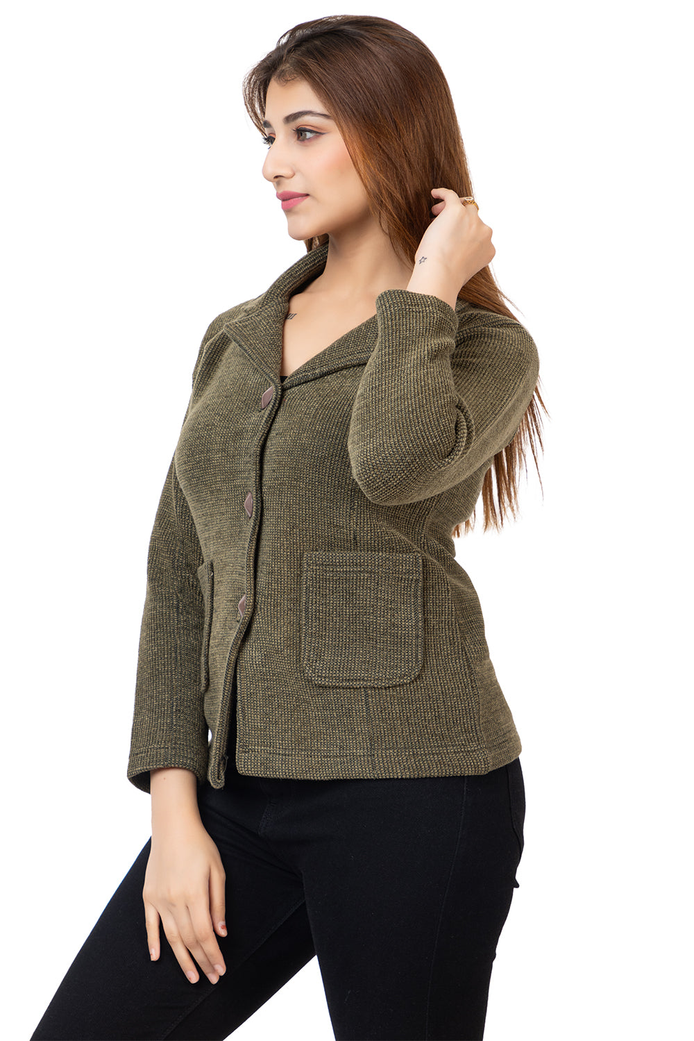 2815 Olive Knitted Notched-Collar Cardigan with Pockets TWENTY ME