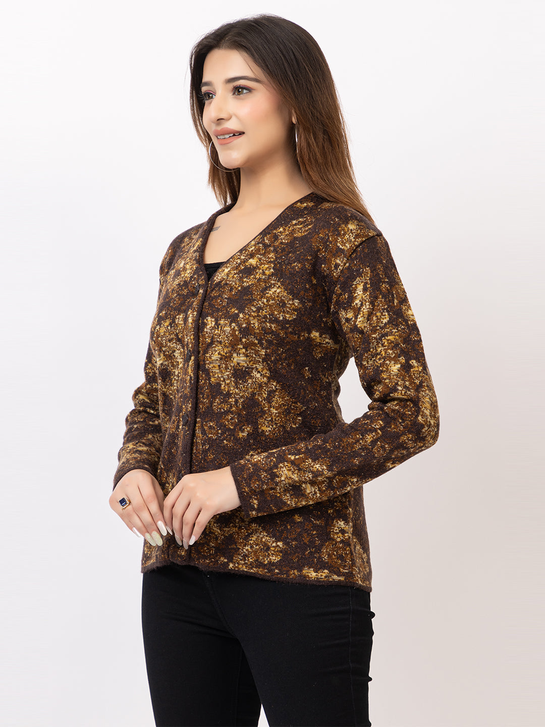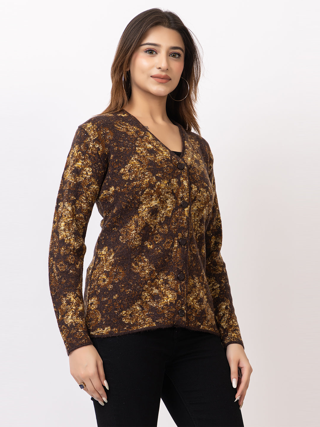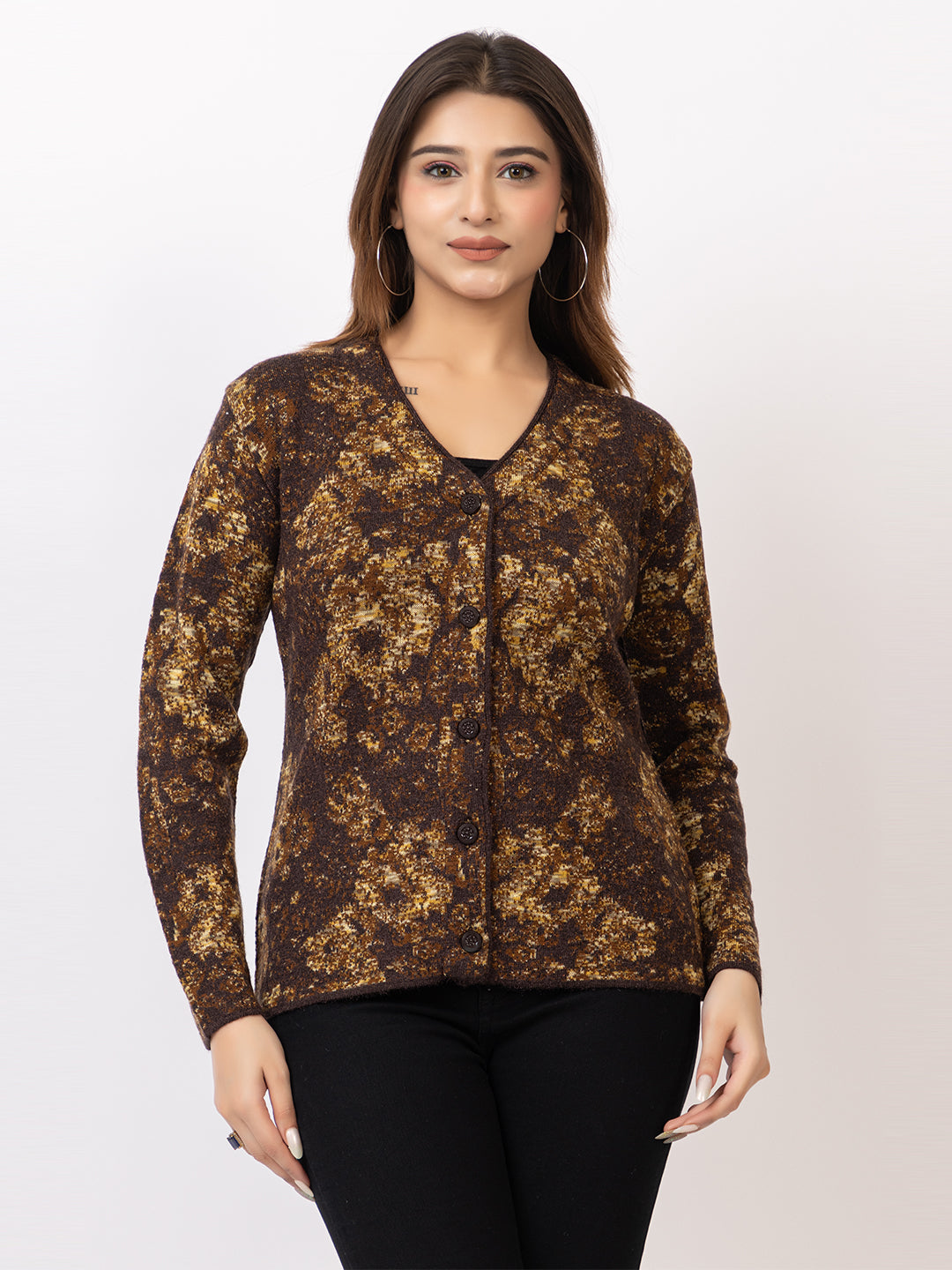 2842 Brown V Neck Cardigan winter wear TWENTY ME
