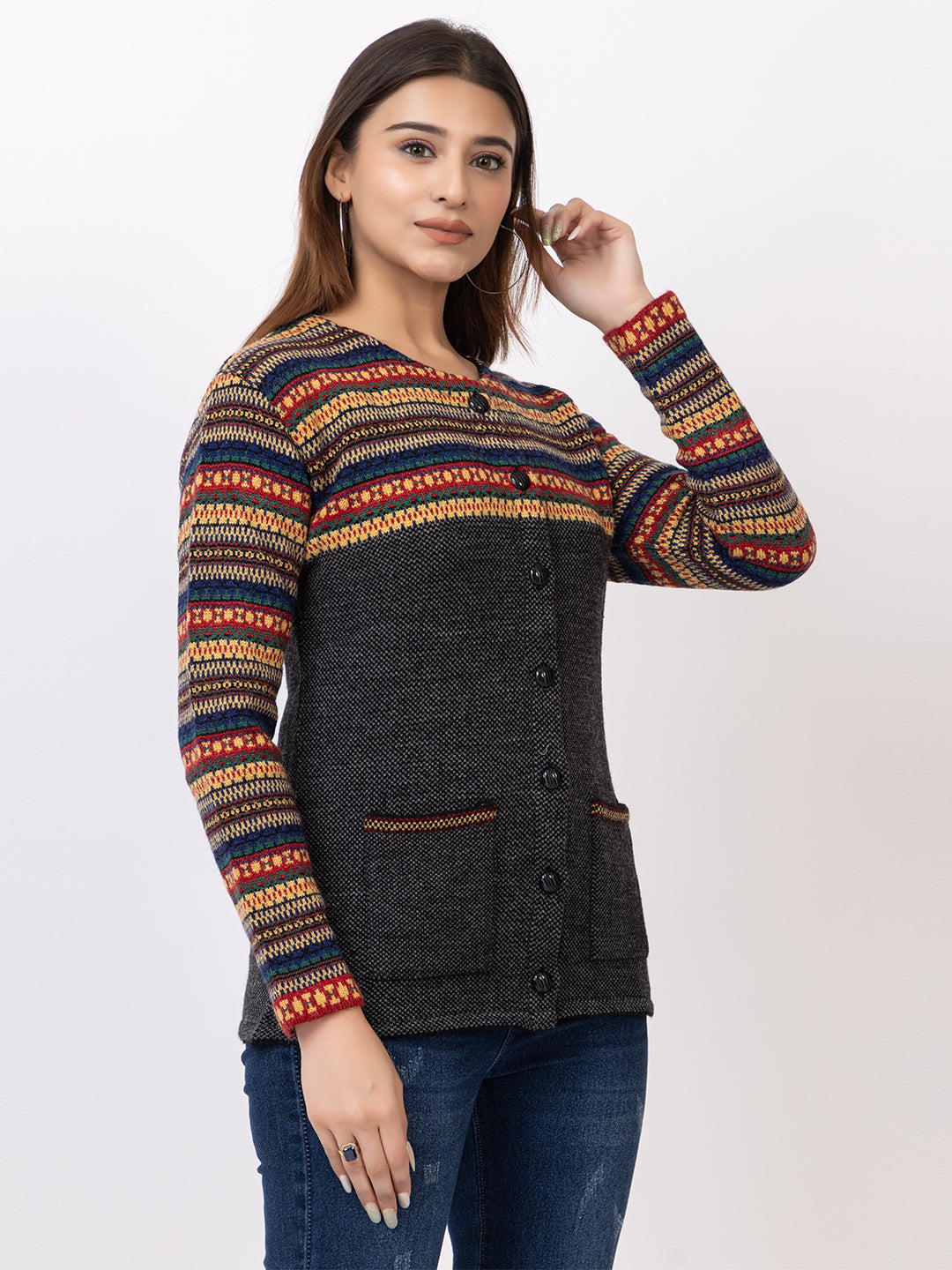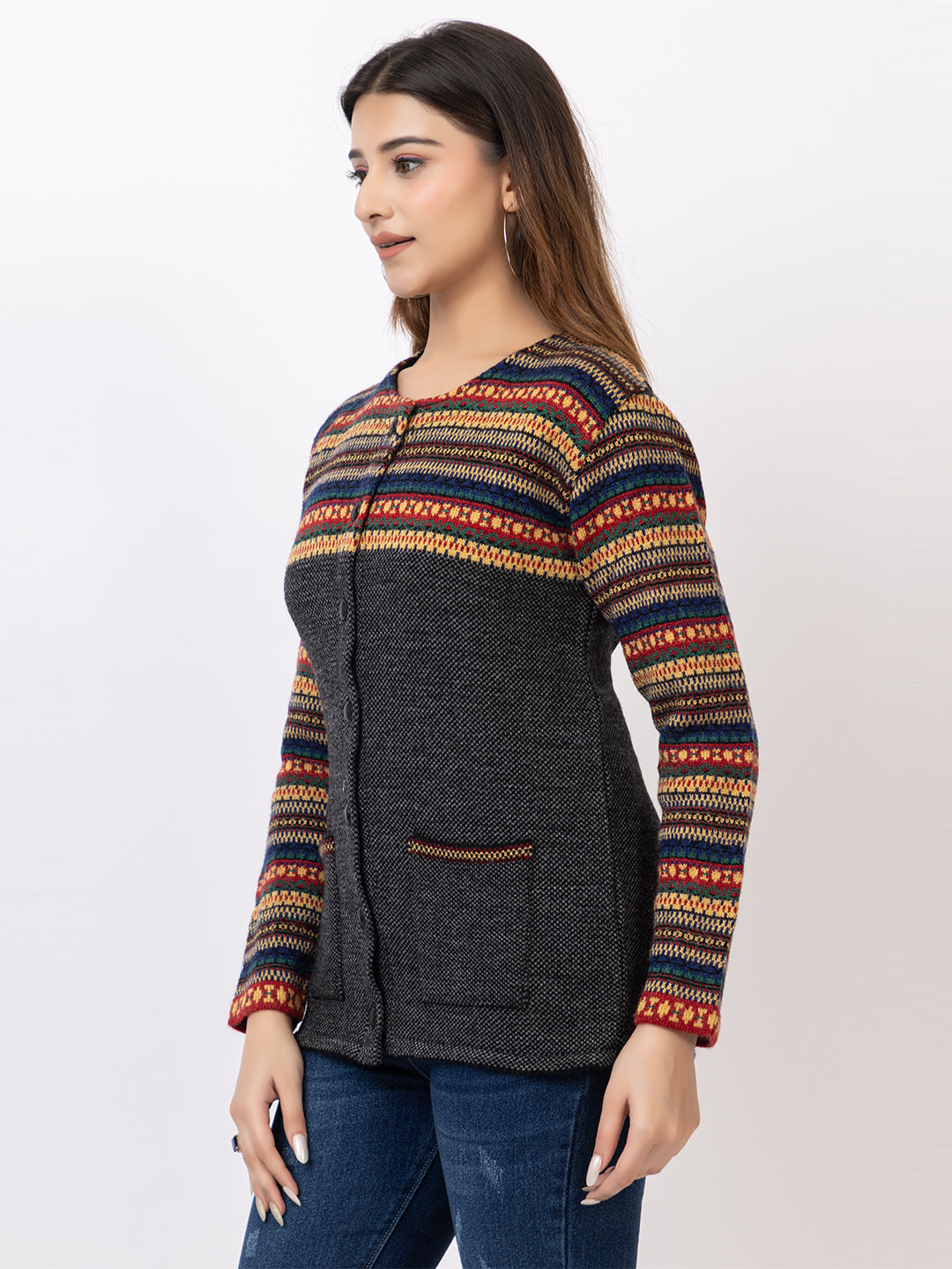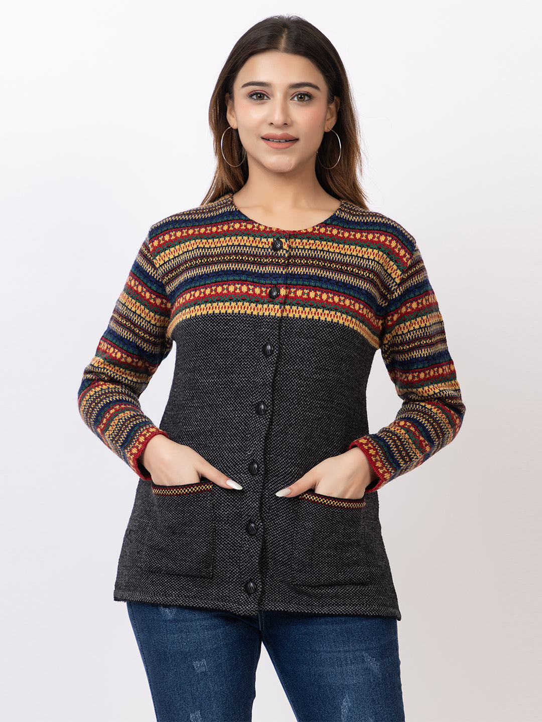2843 Black Round Neck Cardigan winter wear TWENTY ME
