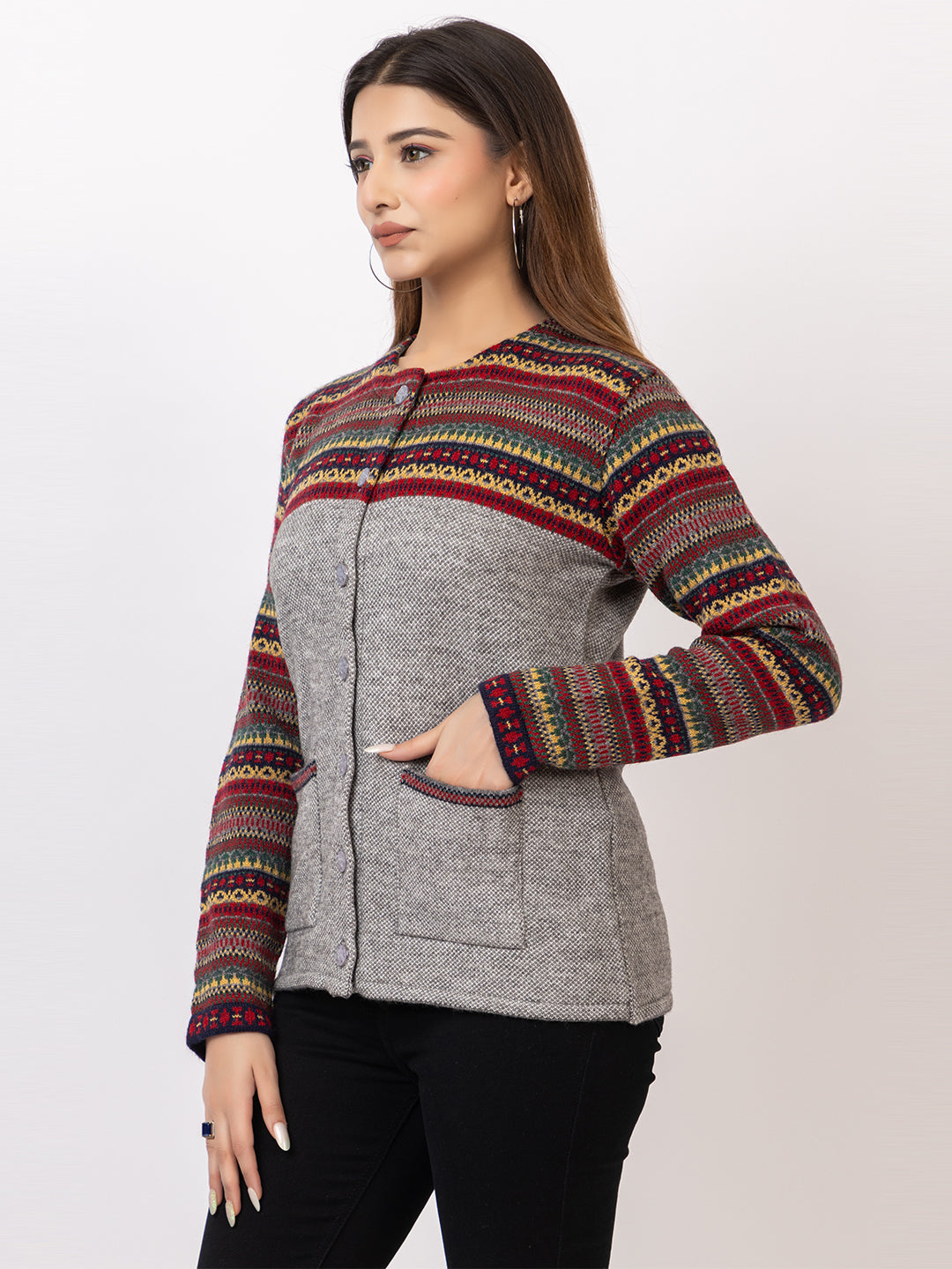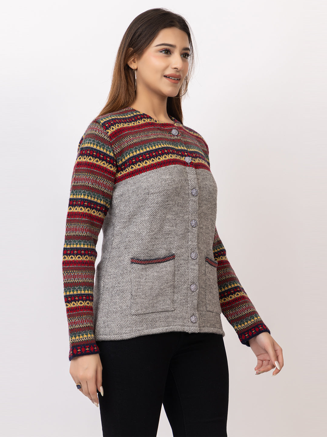 2843 Grey Round Neck Cardigan winter wear TWENTY ME