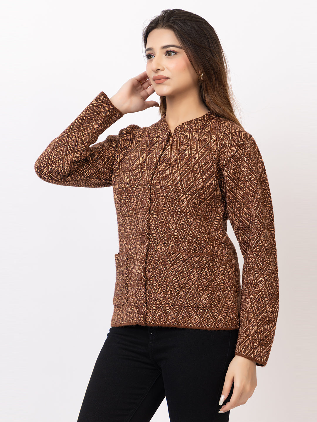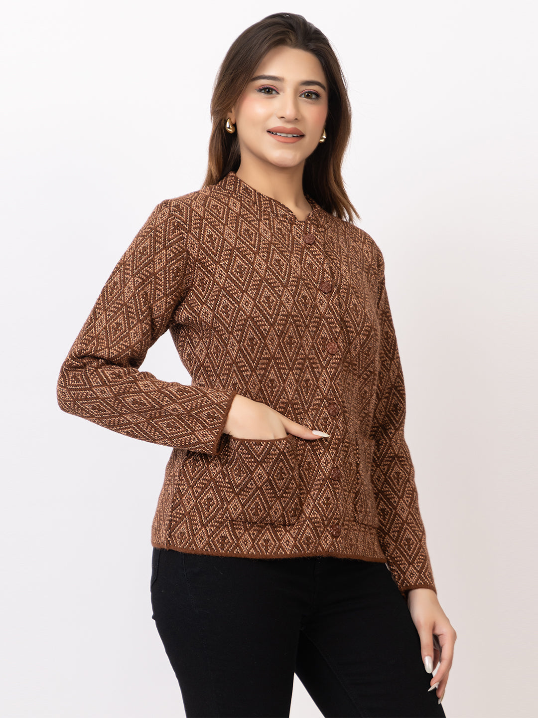 2845 Brown Crew Neck Cardigan winter wear TWENTY ME