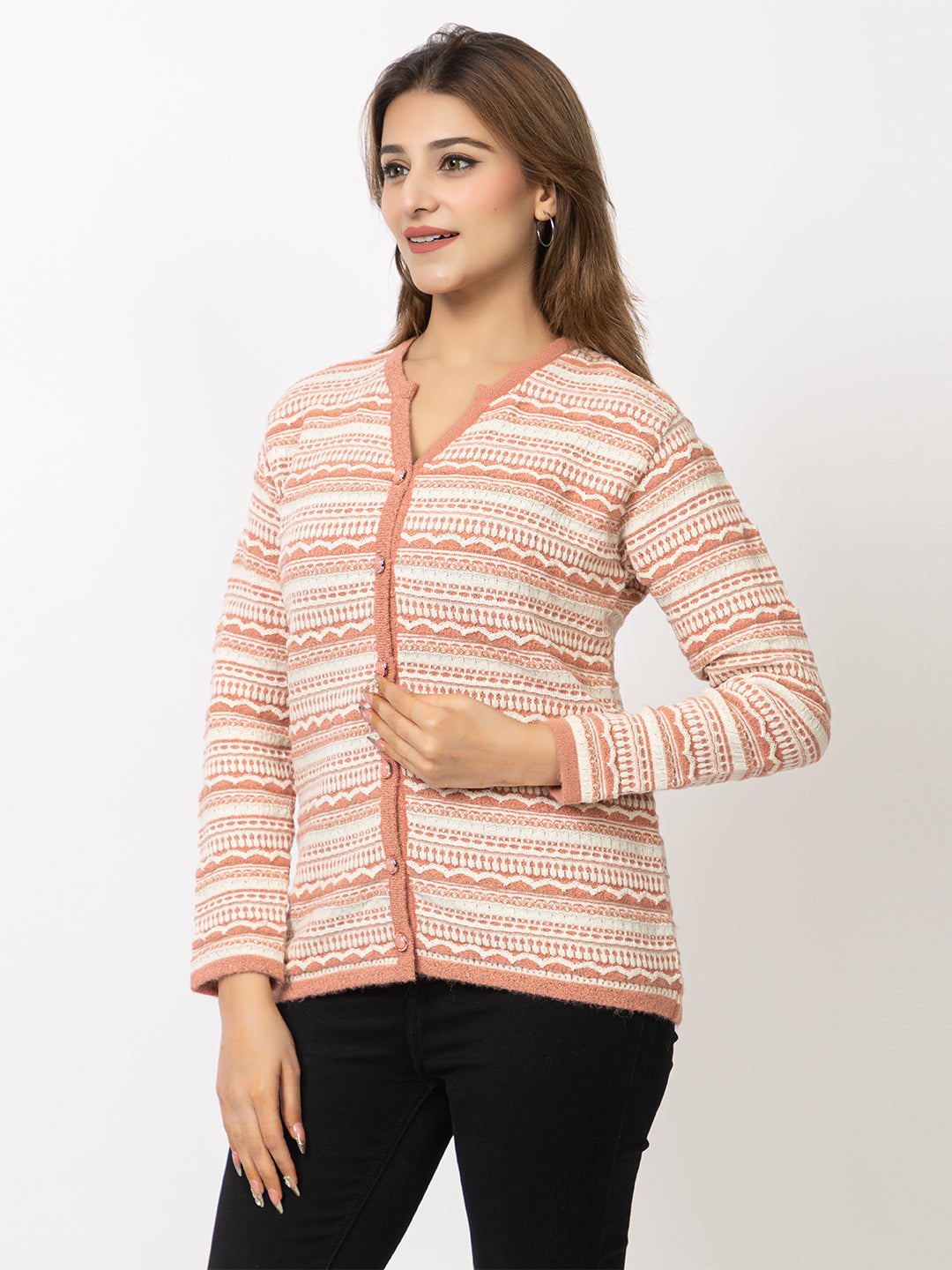 2846 Peach Cardigan Acrylic Blend Button Closure Soft & Warm Winter Wear TWENTY ME