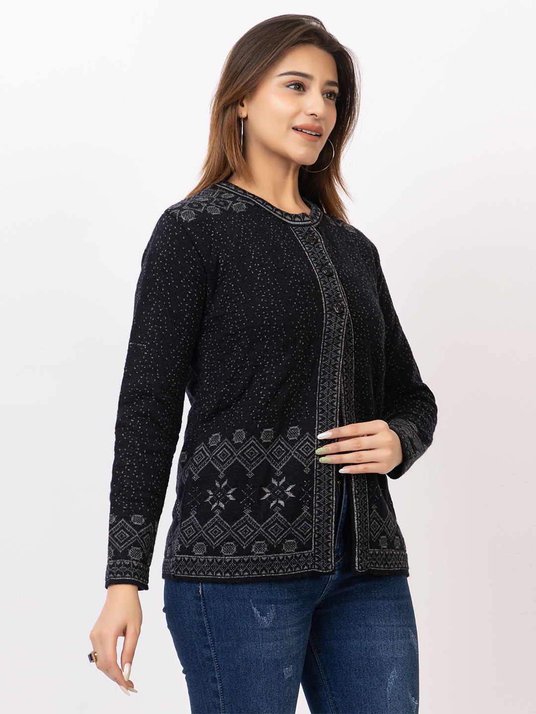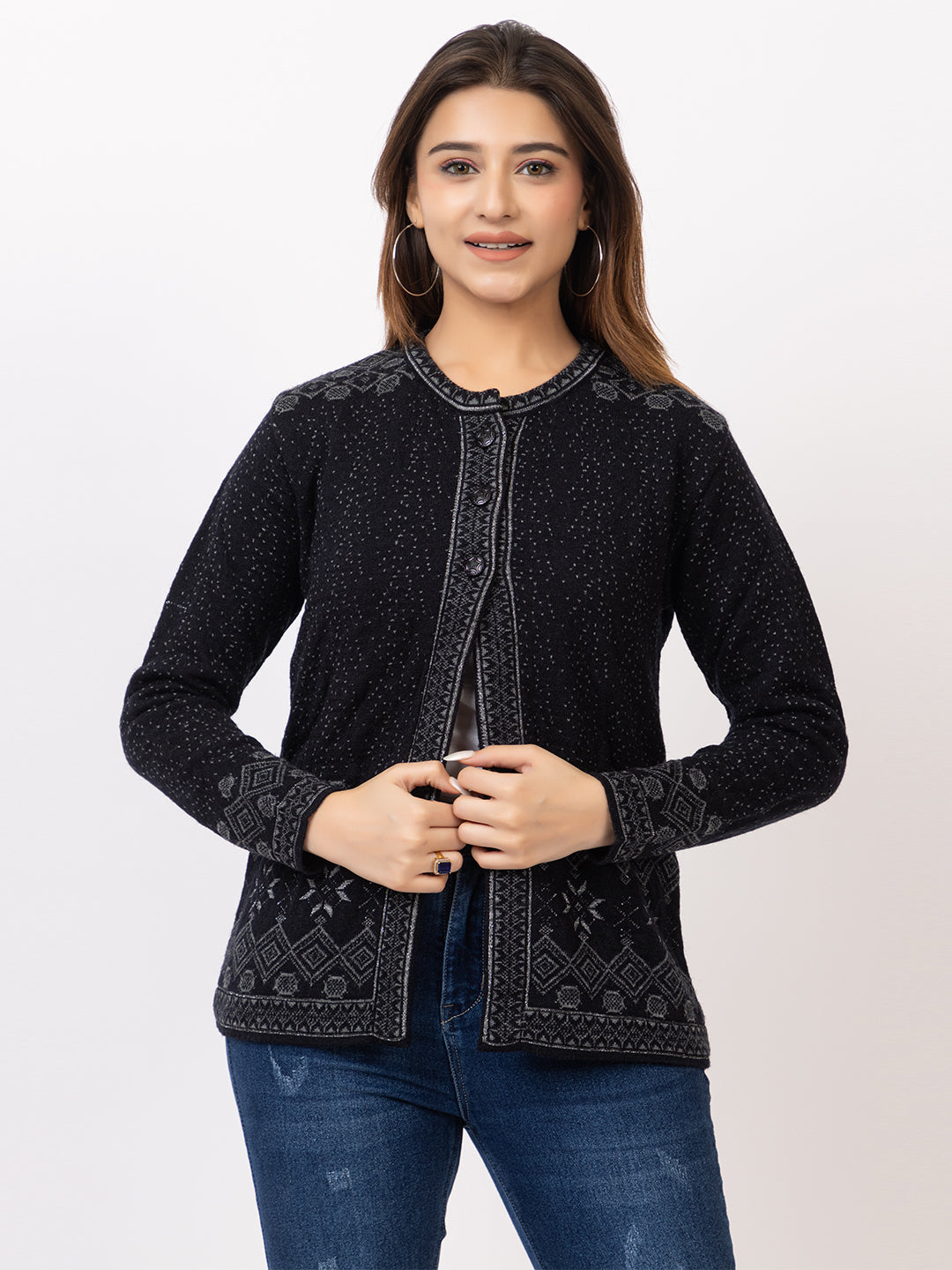 2868 Black Crew Neck Cardigan winter wear TWENTY ME