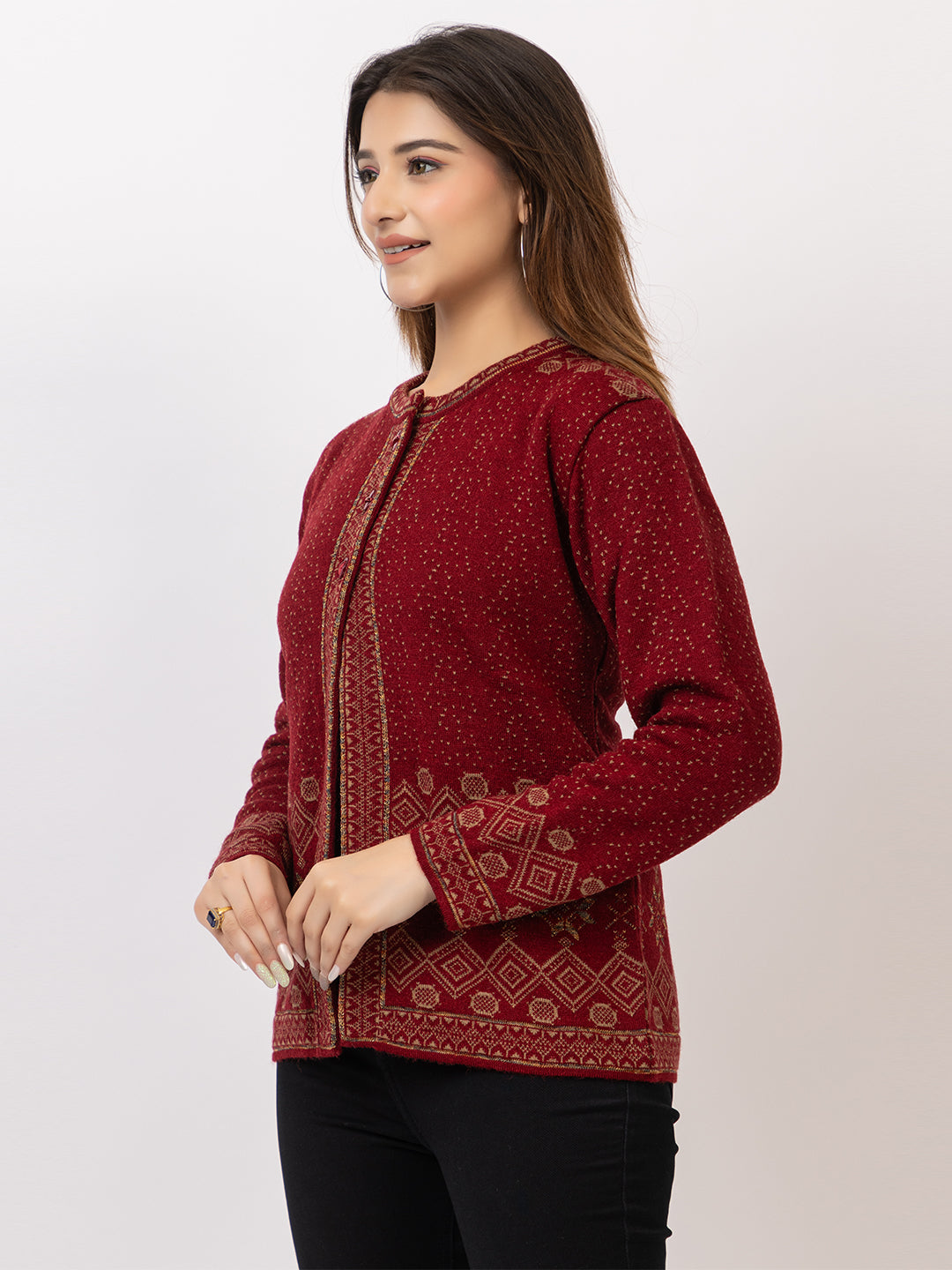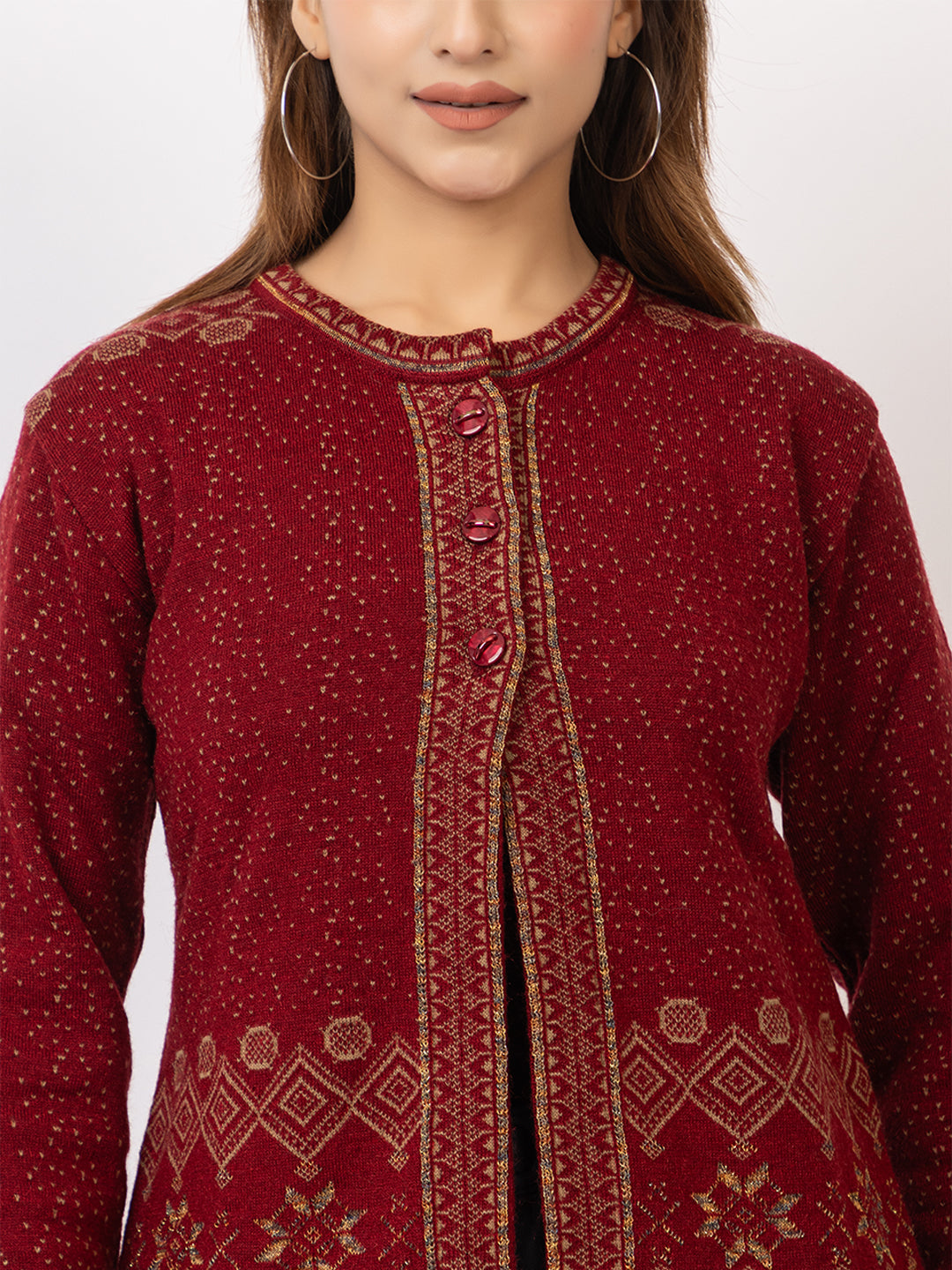 2868 Maroon Crew Neck Cardigan winter wear TWENTY ME