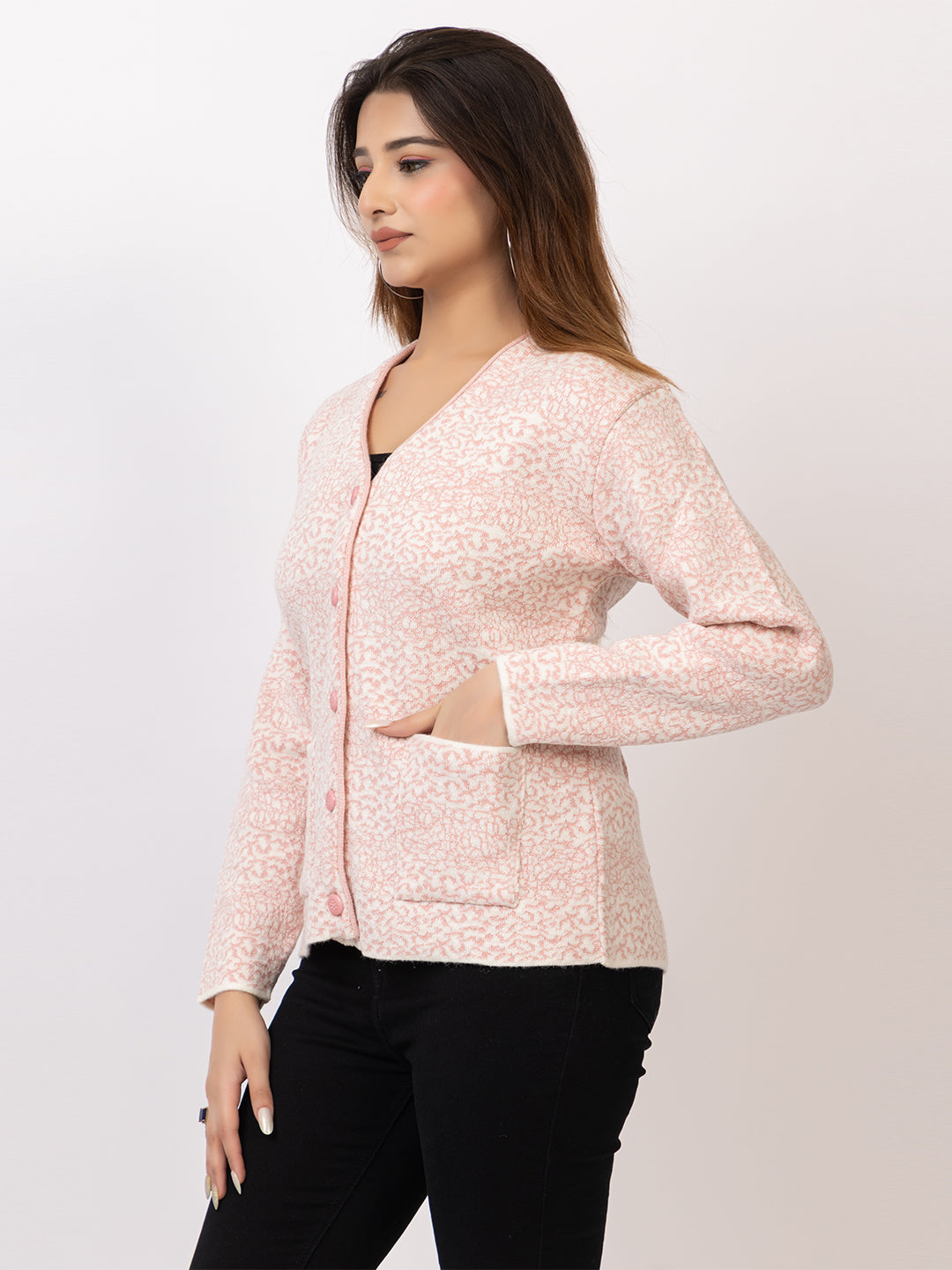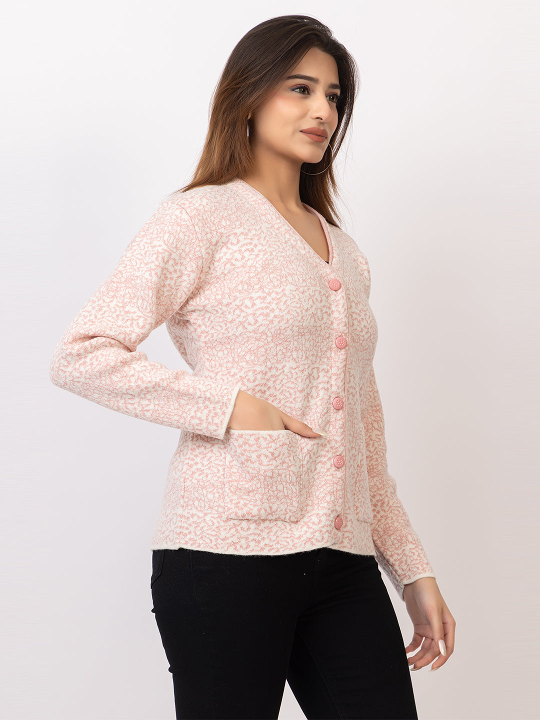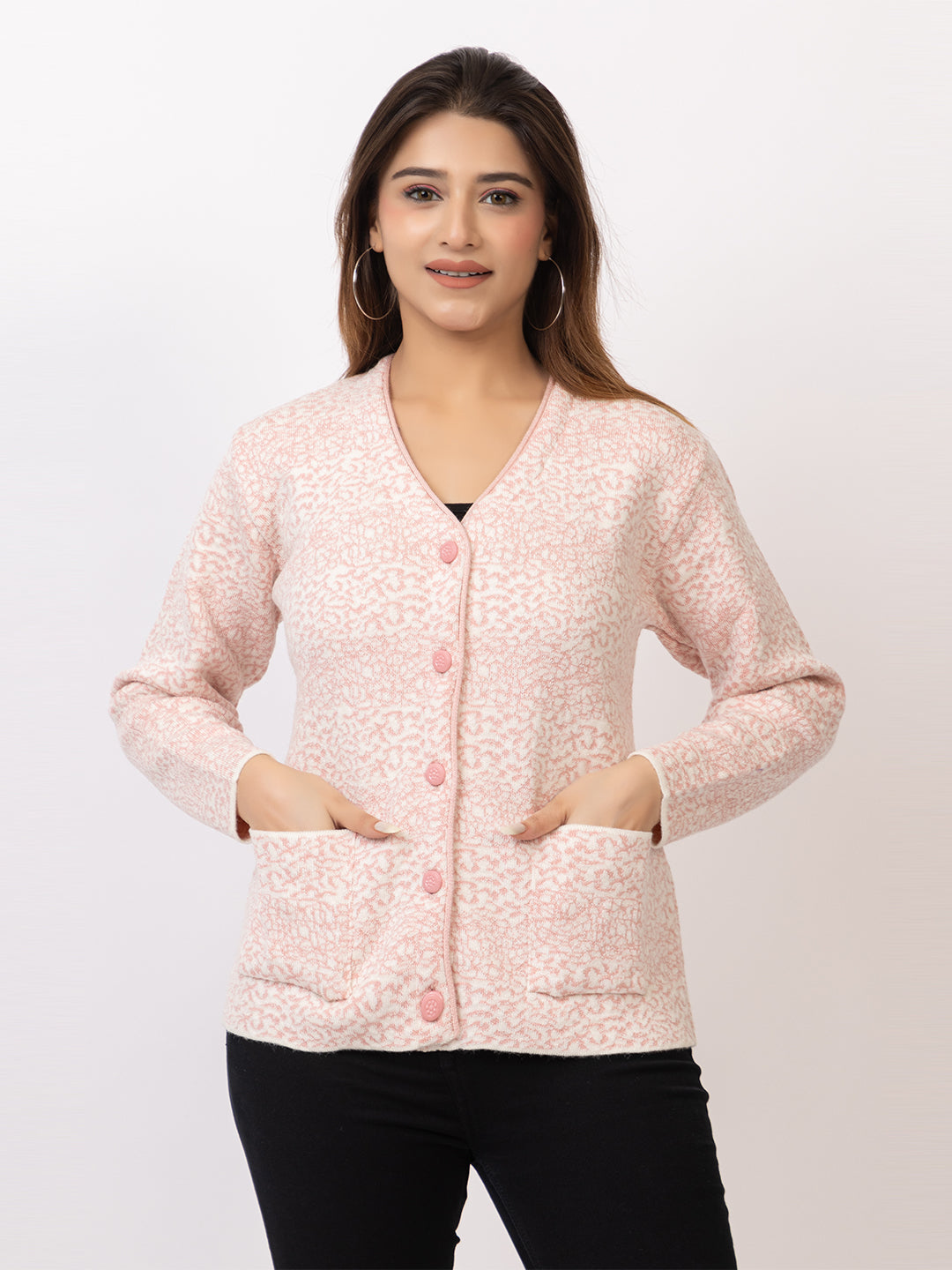 2870 Pink V Neck Cardigan winter wear TWENTY ME