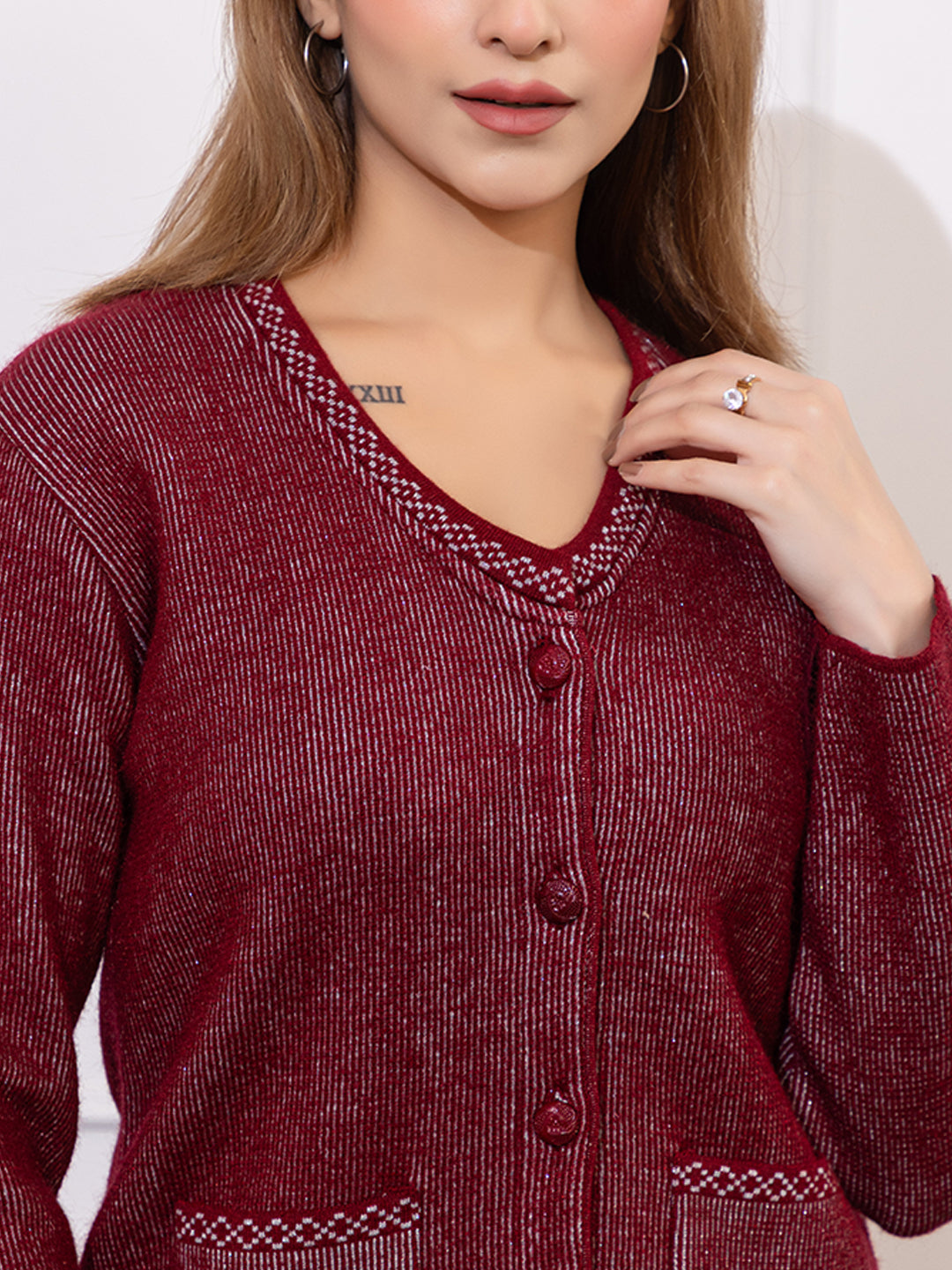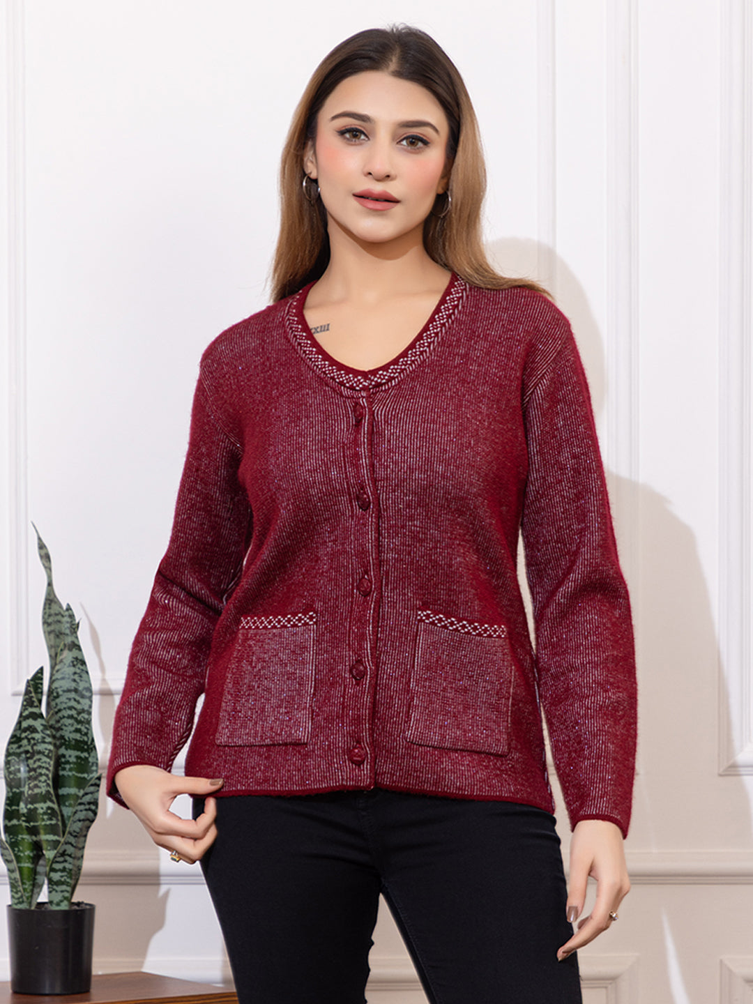 2892 Maroon Acrylic Nylon Button Closure Soft & Warm Cardigans Winter Wear TWENTY ME