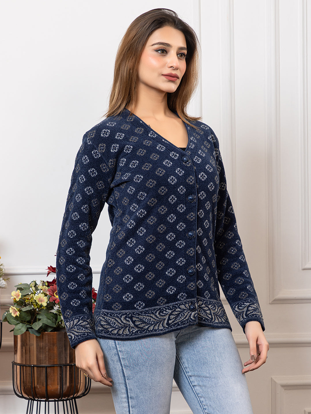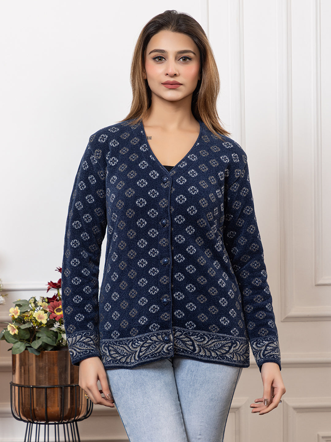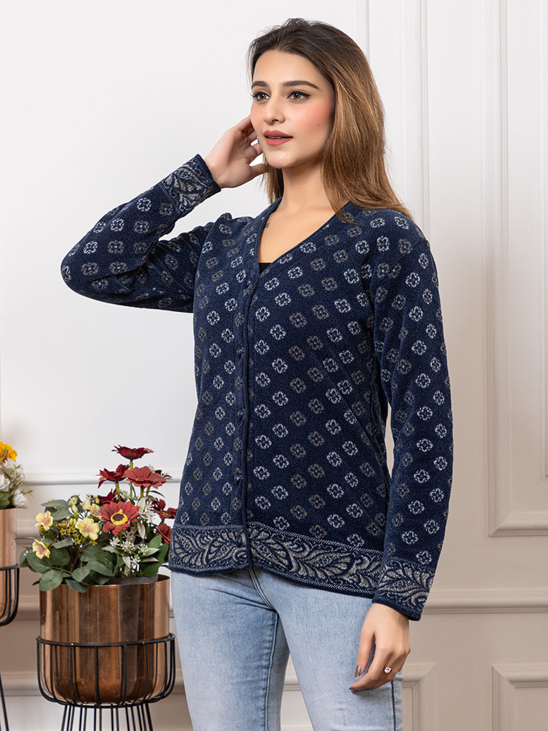 2900 Navy V Neck Acrylic Wool Warm Cardigan for Women TWENTY ME