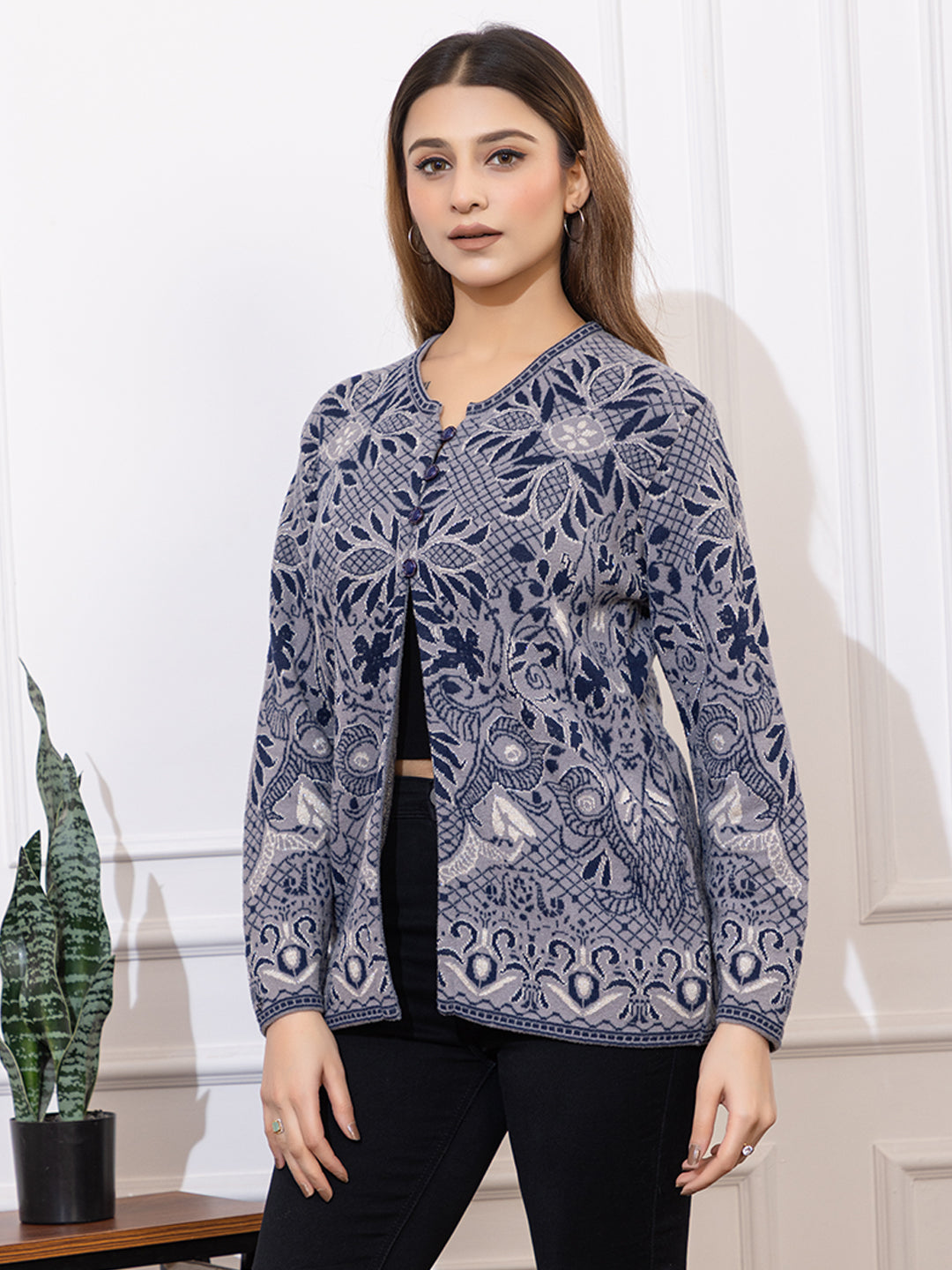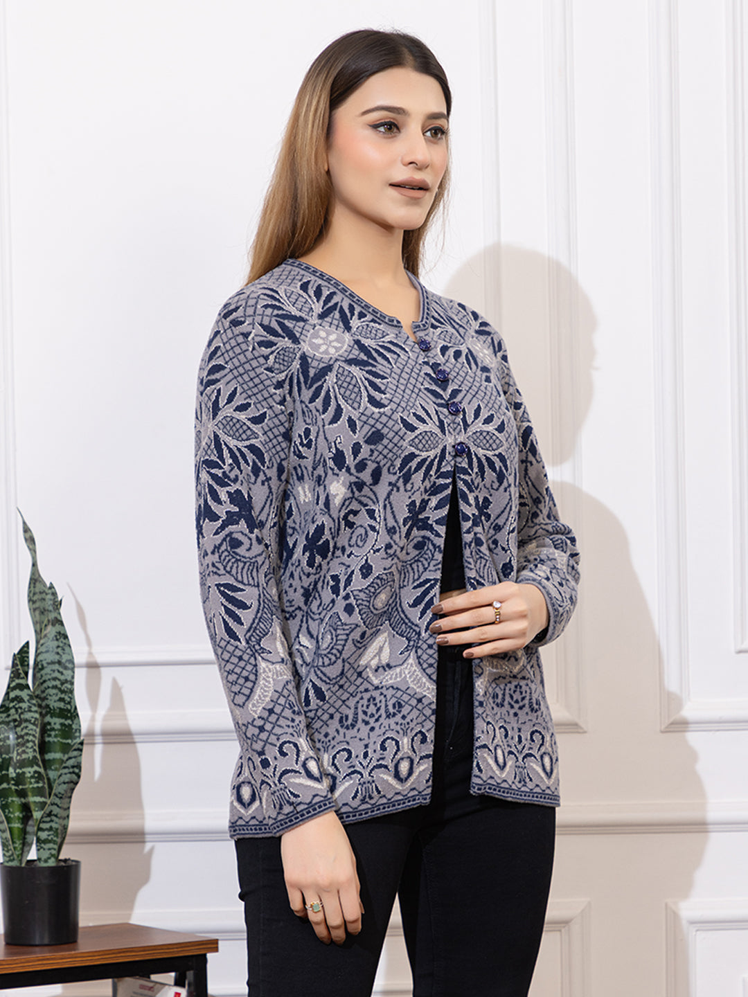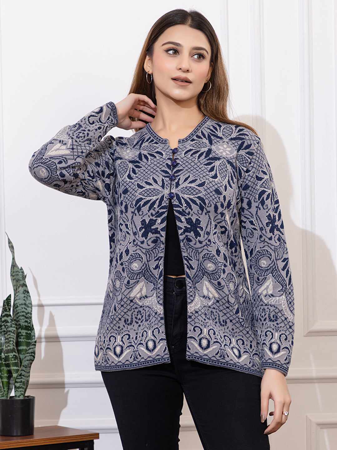 2912 Navy Acrylic Nylon Soft and Warm Full Sleeve Winter Cardigan for Women's TWENTY ME