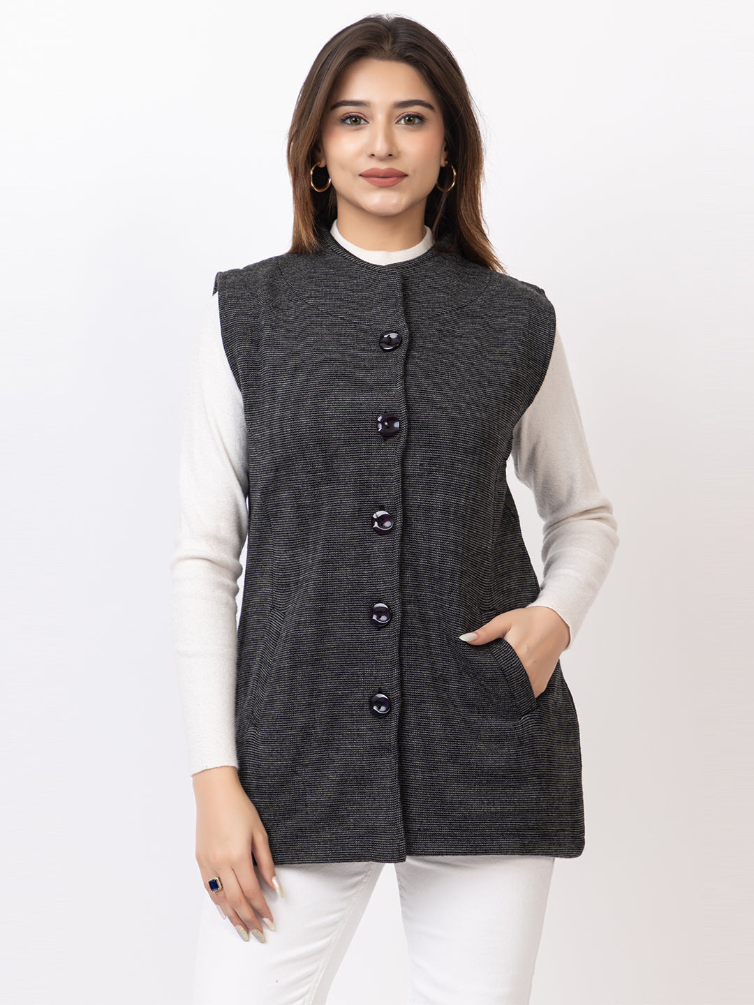 4228 Black Sleevless Nehru Jacket Twenty Me Winter Wear