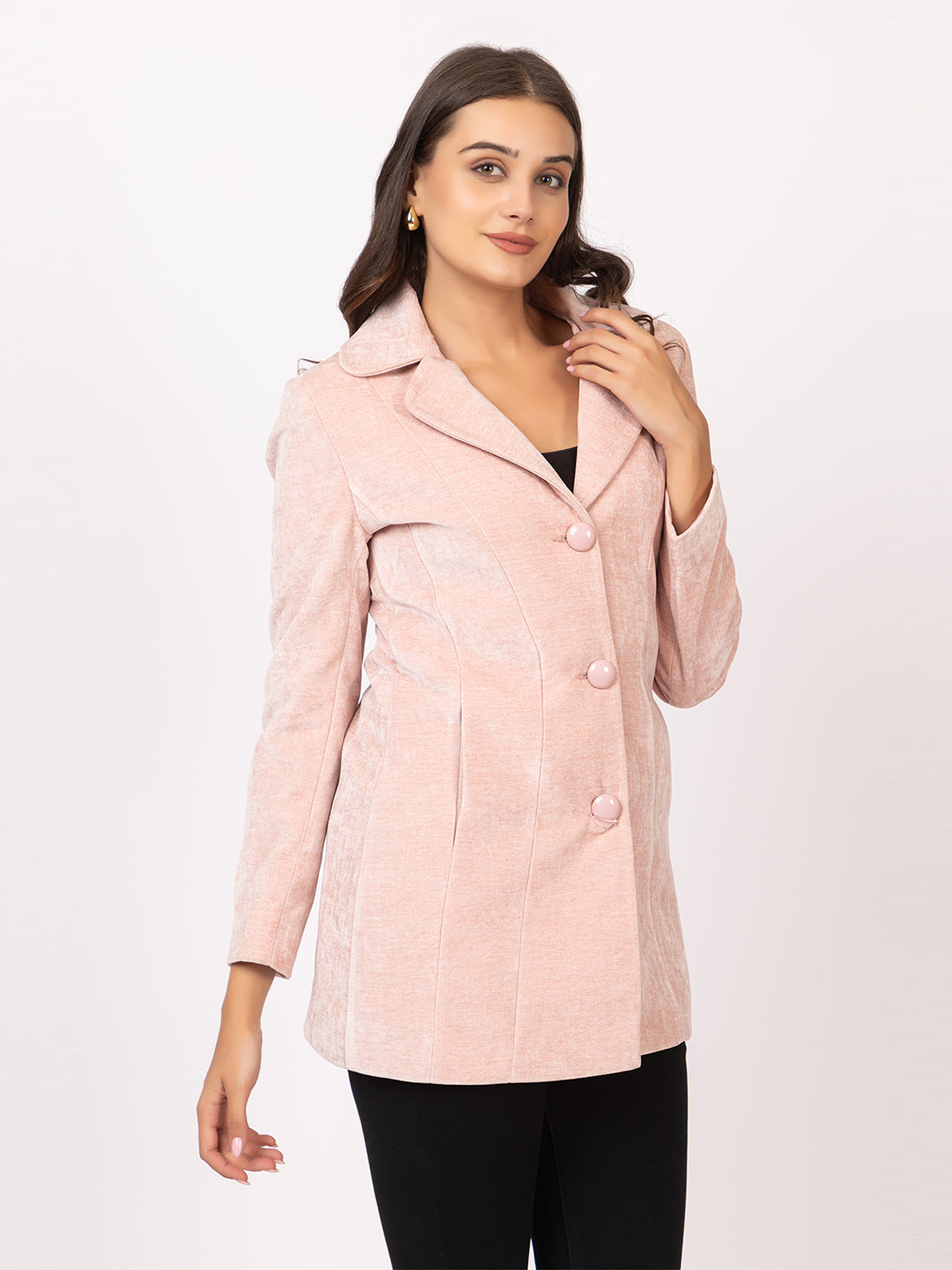 4263 Beige Acrylic Blend Self Design Coat Winter Wear TWENTY ME