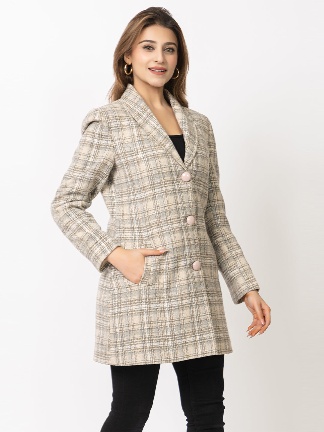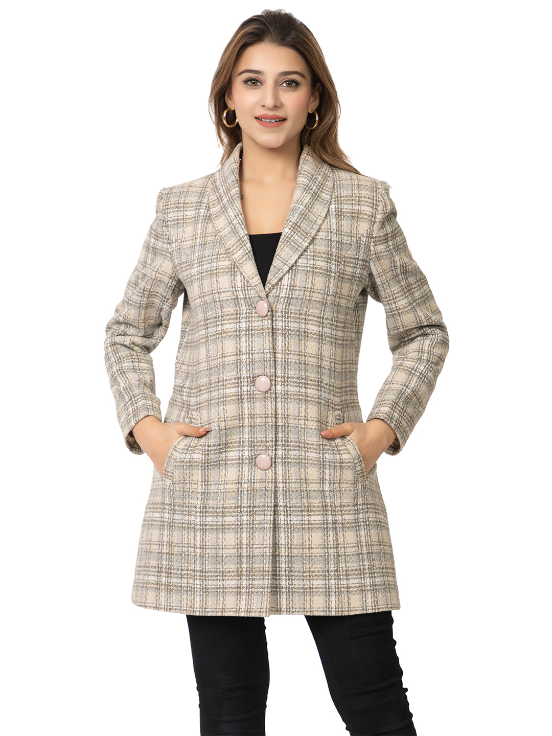 4348 Beige Acrylic Blend Self Design Coat Winter Wear TWENTY ME