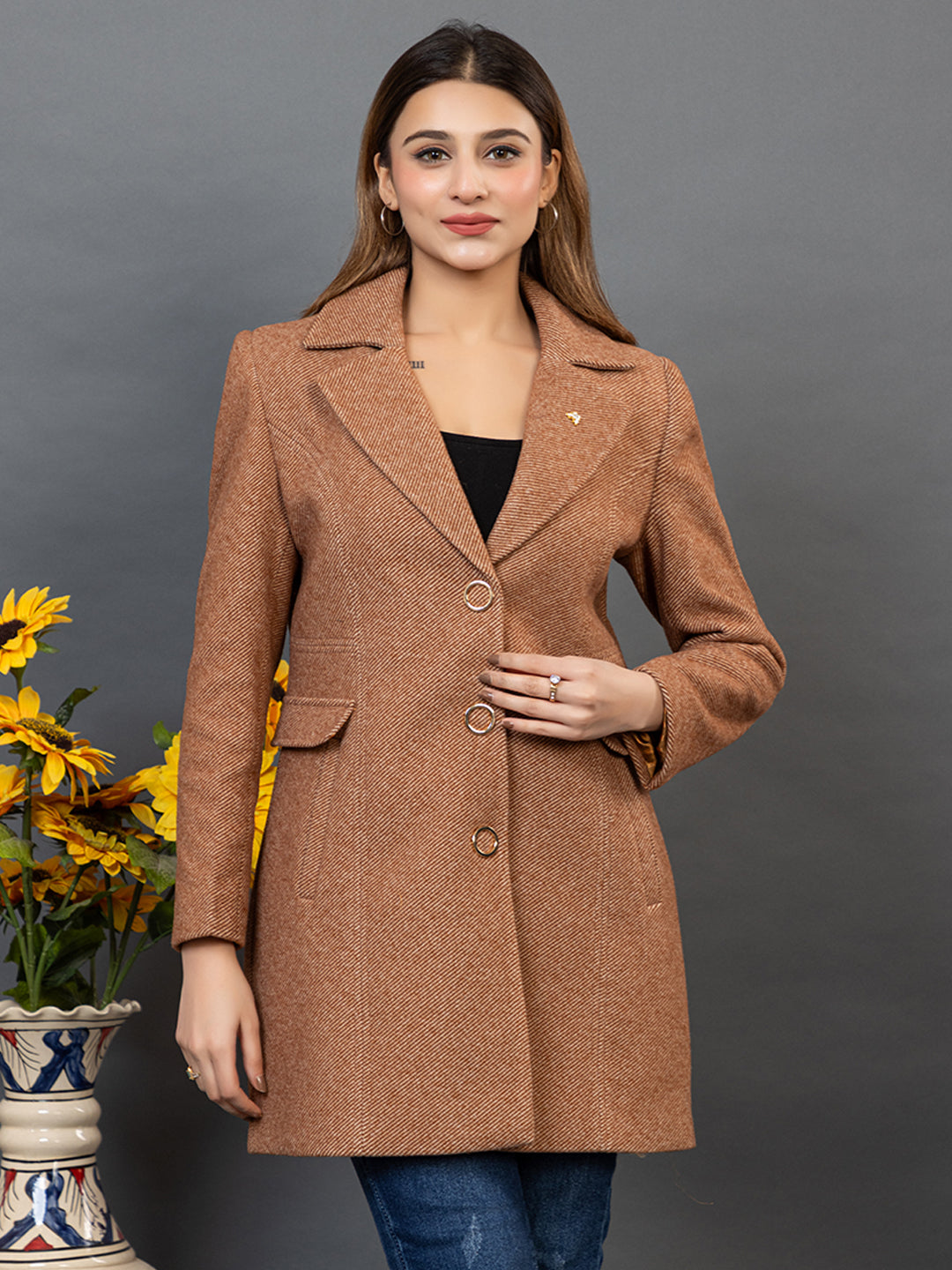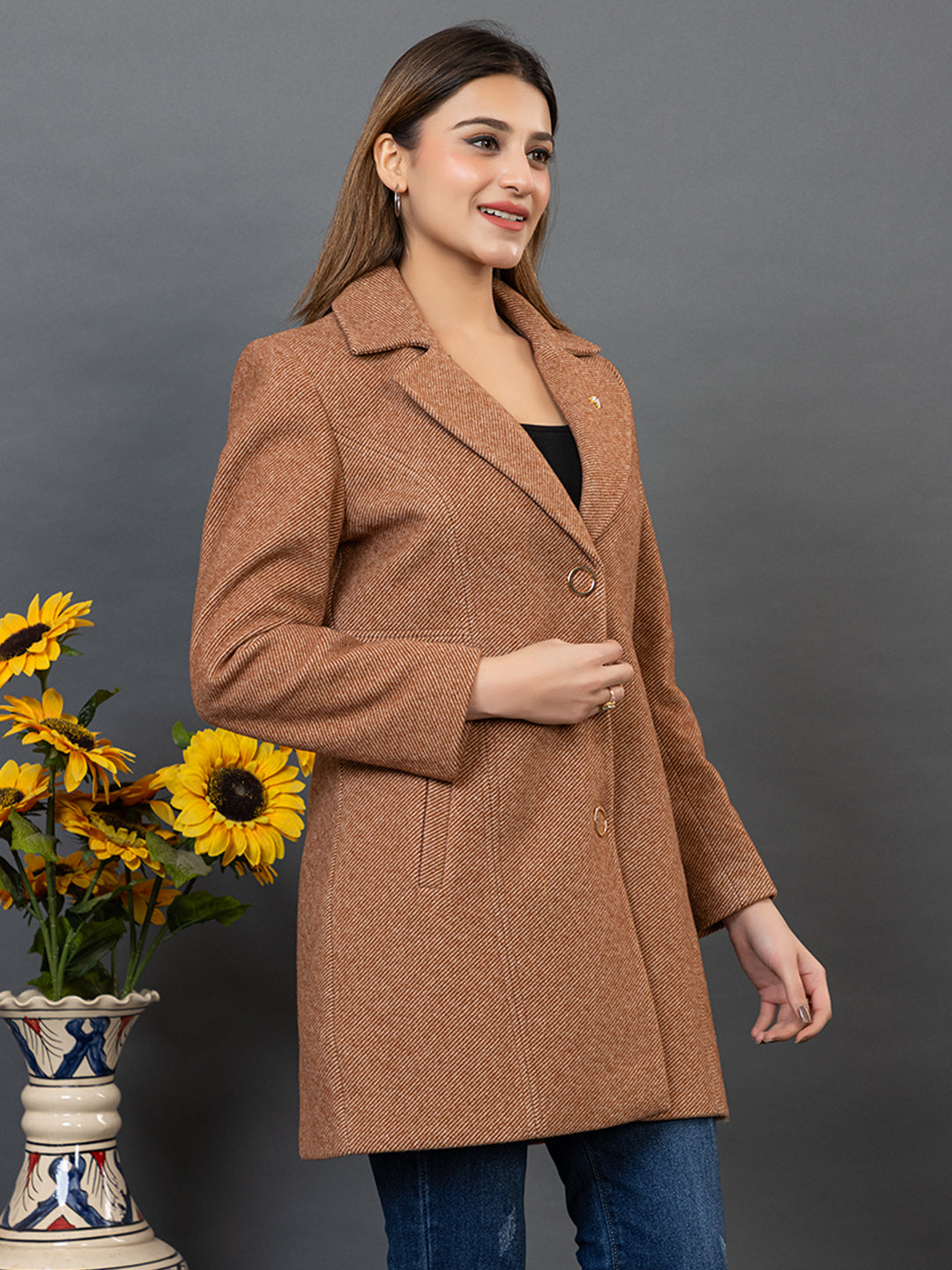4357 D.Camel acrylic Blend Collared Full Sleeve Women's Coat Winter Wear TWENTY ME