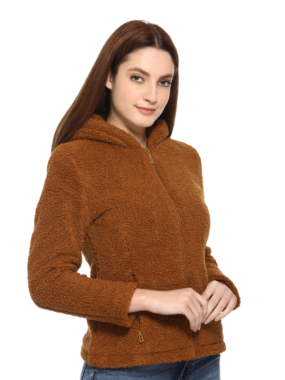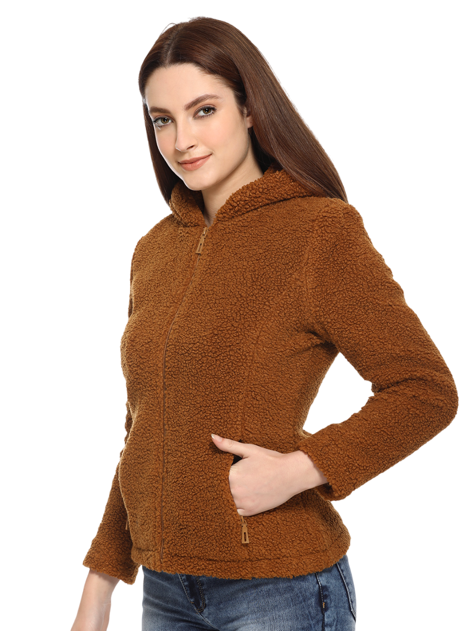 8048 Brown Full Sleeve Hooded With Zip Women's Jacket Winter Wear TWENTY ME