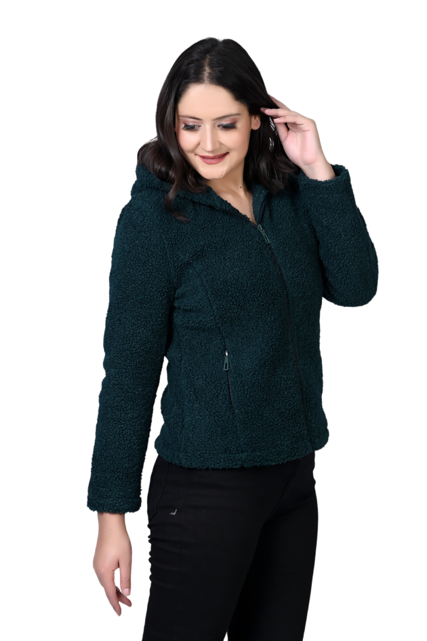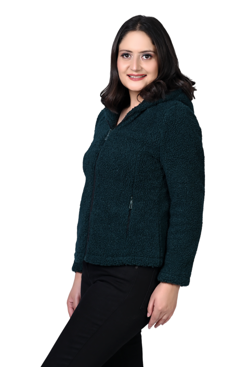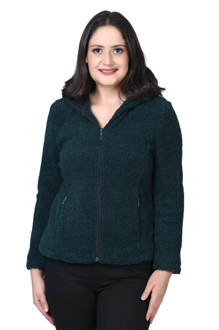 8048 Green Full Sleeve Hooded With Zip Women's Jacket Winter Wear TWENTY ME