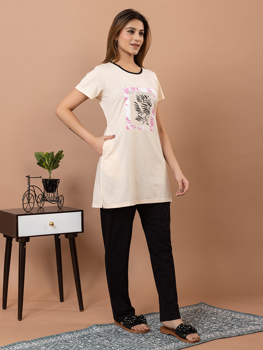 Tme-501 L t Camel Round Neck Cotton  Night Suit Summer Wear TWENTY ME
