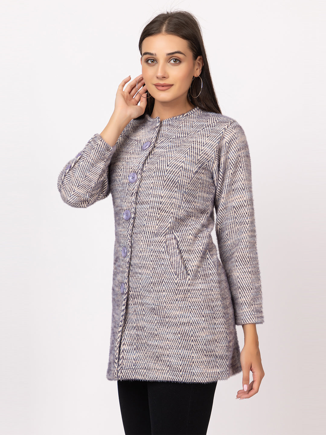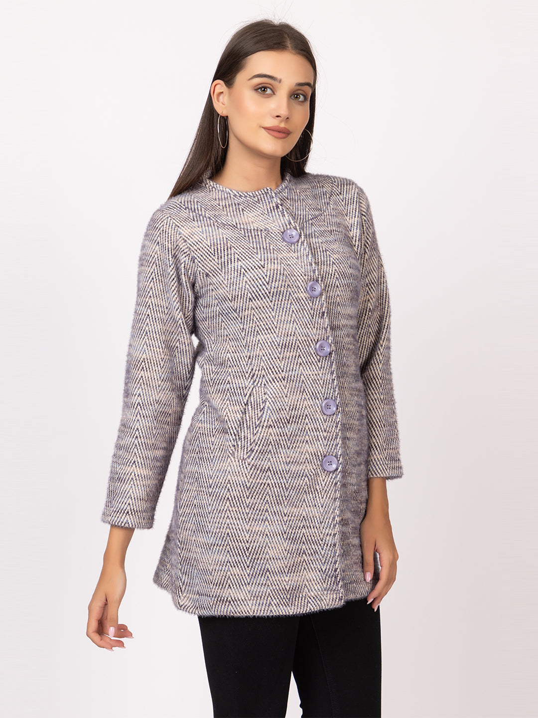 4648 Grey Long Cardigan Acrylic Blend Button Closure and with Two Side Pockets Winter Wear TWENTY ME